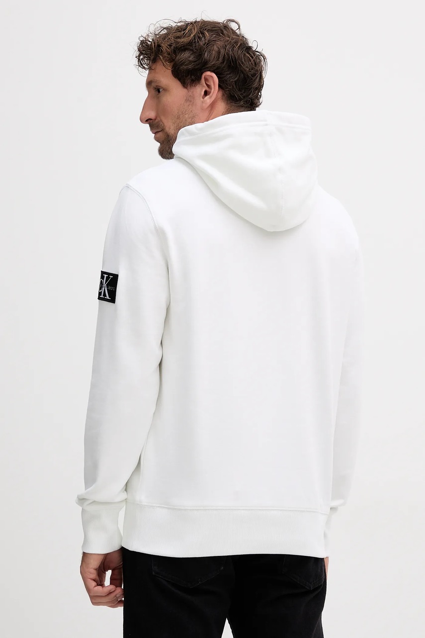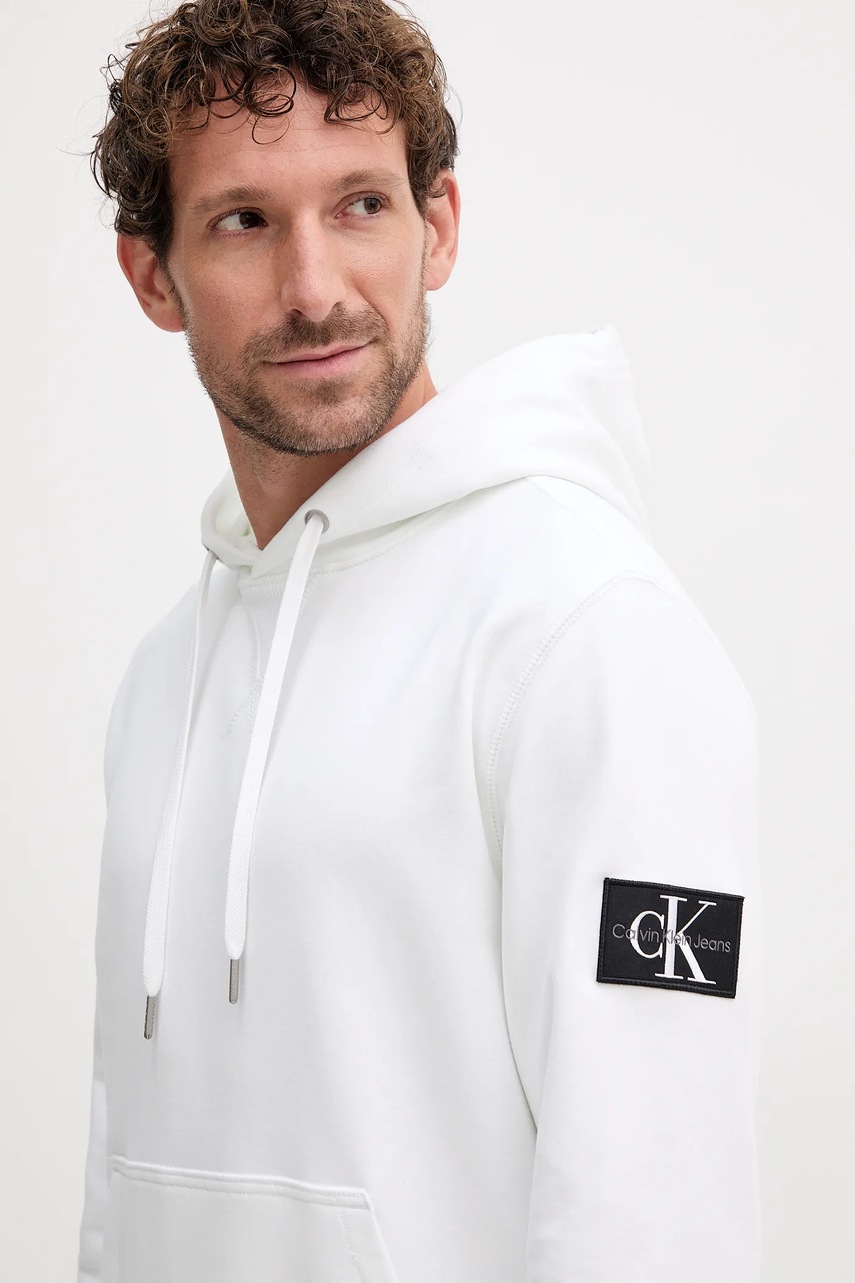 Calvin Klein Jeans bluza bawełniana męska kolor biały z kapturem z aplikacją J30J323430