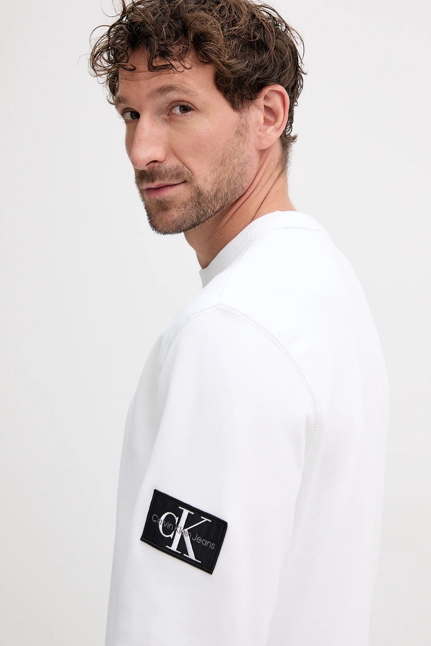 Calvin Klein Jeans bluza bawełniana męska kolor biały gładka J30J323426