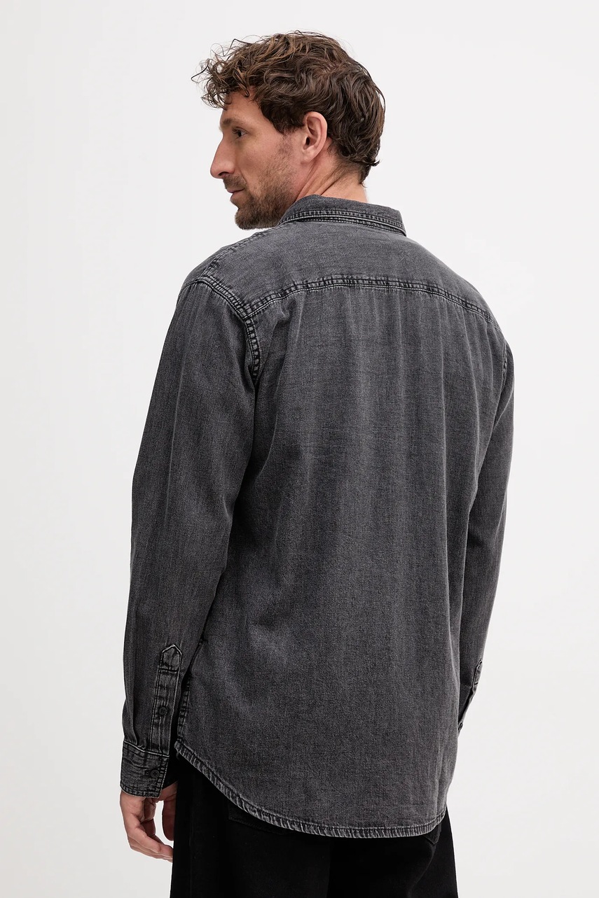 Calvin Klein Jeans koszula bawełniana męska kolor szary regular z kołnierzykiem klasycznym LV040BM733