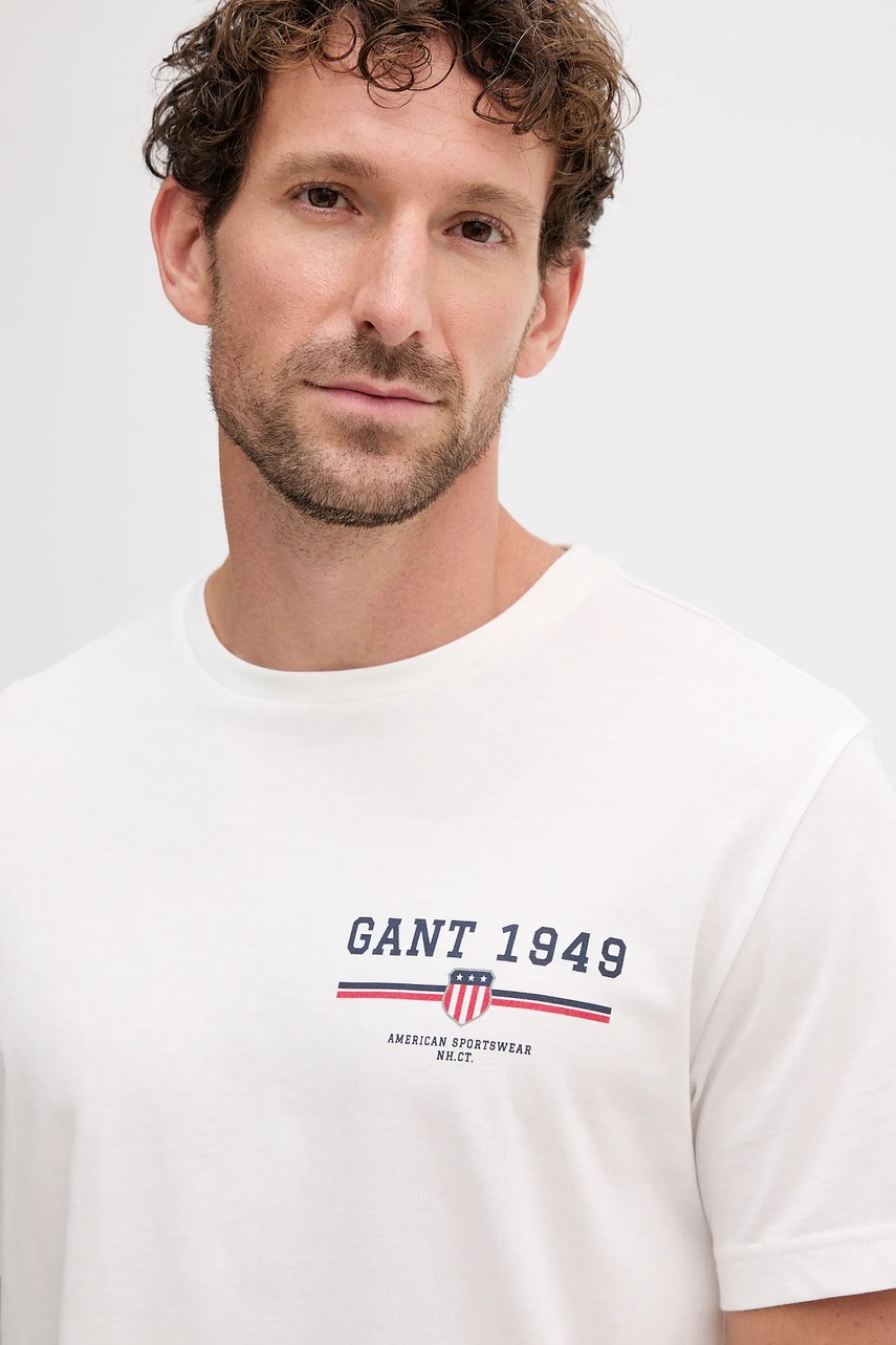 Gant t-shirt bawełniany męski kolor biały z nadrukiem 2067044