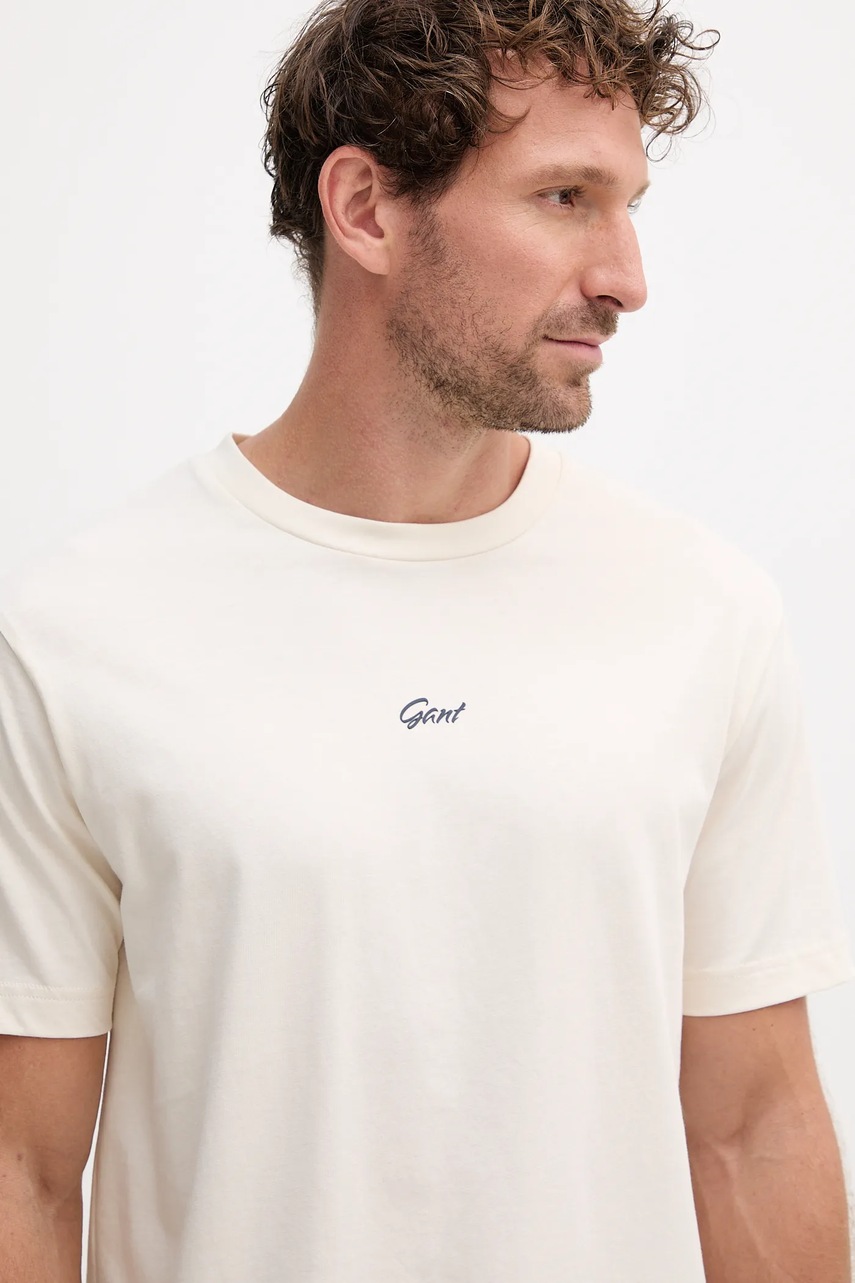 Gant t-shirt bawełniany męski kolor beżowy z nadrukiem 2003343