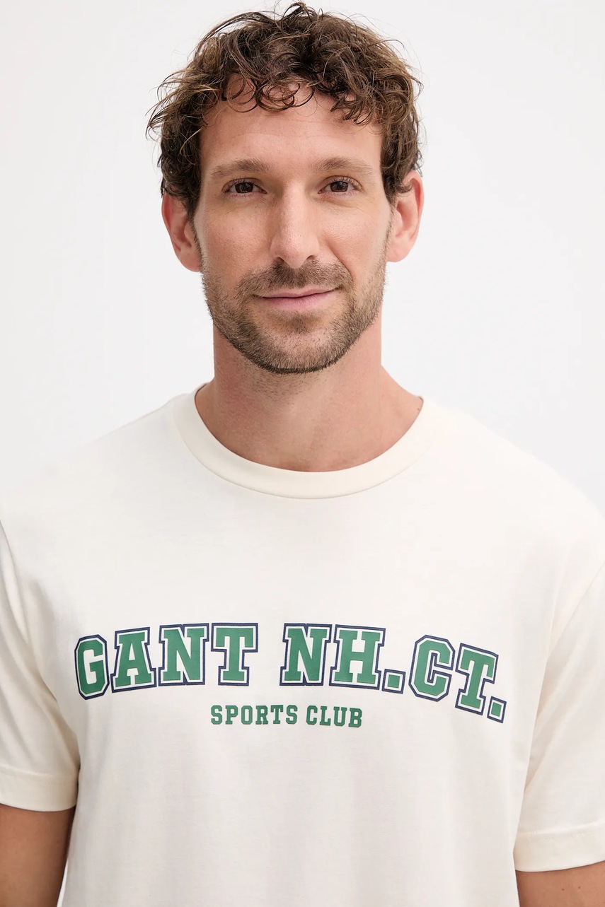 Gant t-shirt bawełniany męski kolor beżowy z nadrukiem 2003345