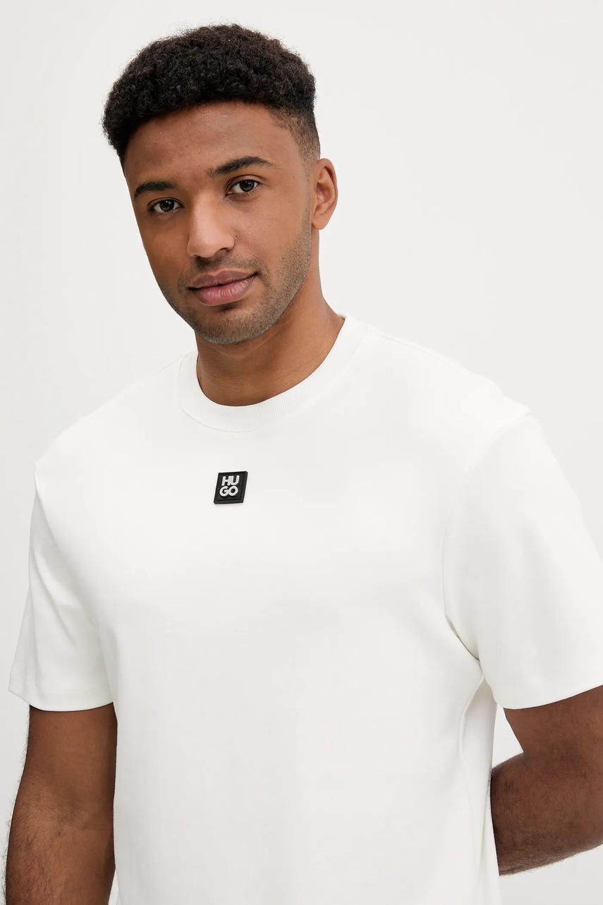 HUGO t-shirt bawełniany męski kolor beżowy gładki 50505201