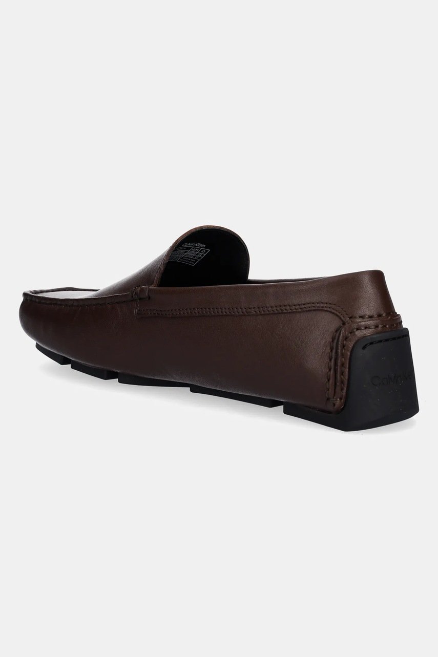 Calvin Klein mokasyny skórzane DRIVER LTH męskie kolor brązowy HM0HM01864