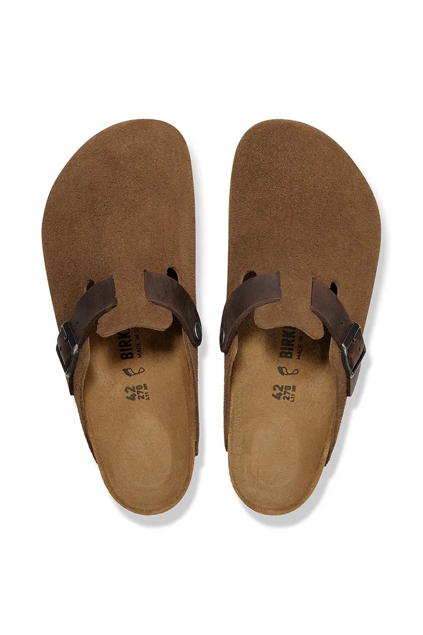 Birkenstock klapki zamszowe Boston męskie kolor brązowy 1030667