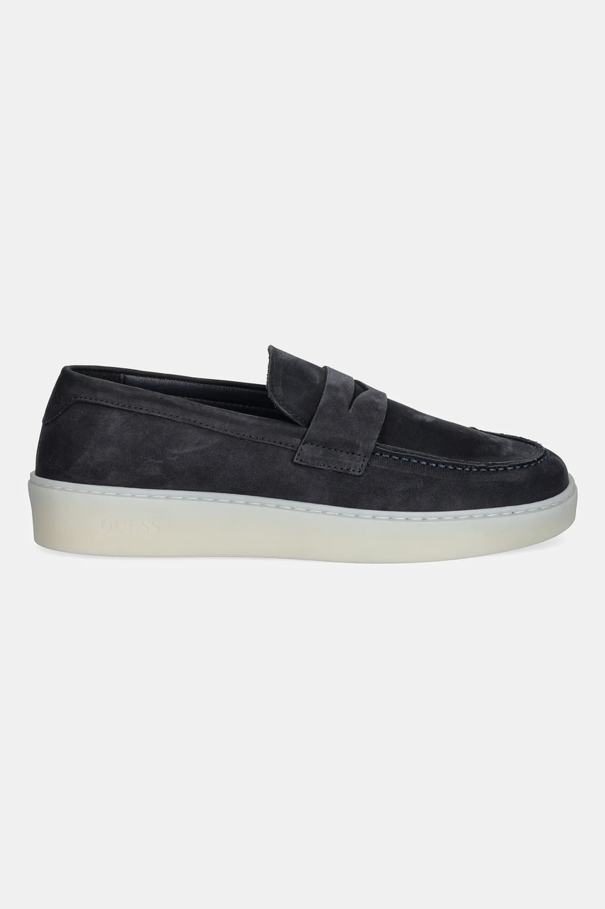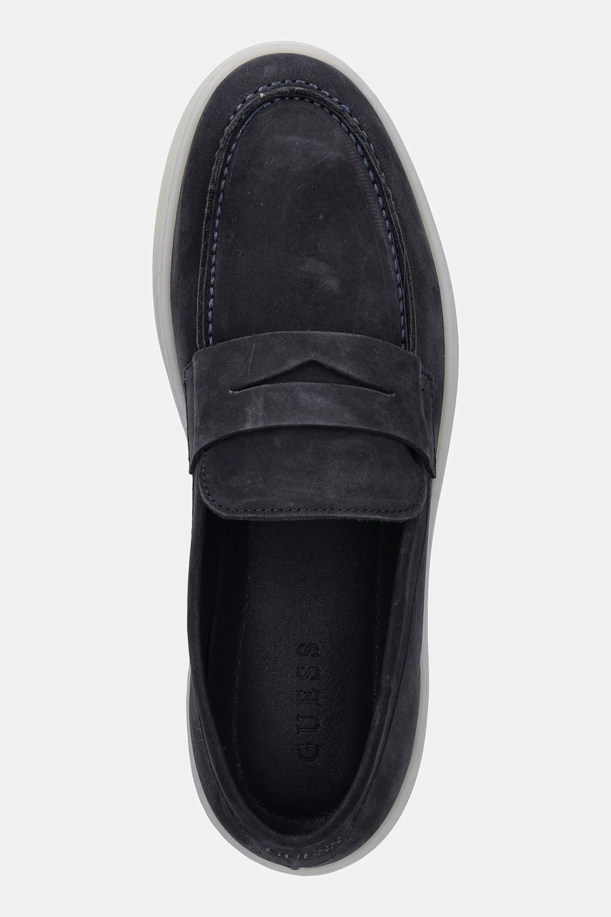 Guess mokasyny nubukowe RICKY MOC męskie kolor granatowy FMTRIC LEA14