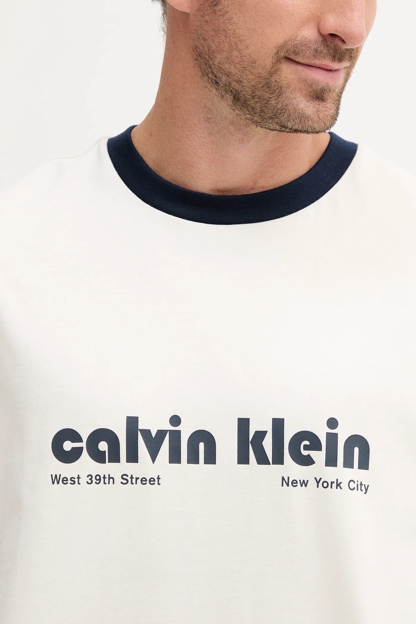 Calvin Klein Jeans t-shirt bawełniany męski kolor beżowy z nadrukiem LV04RC244G