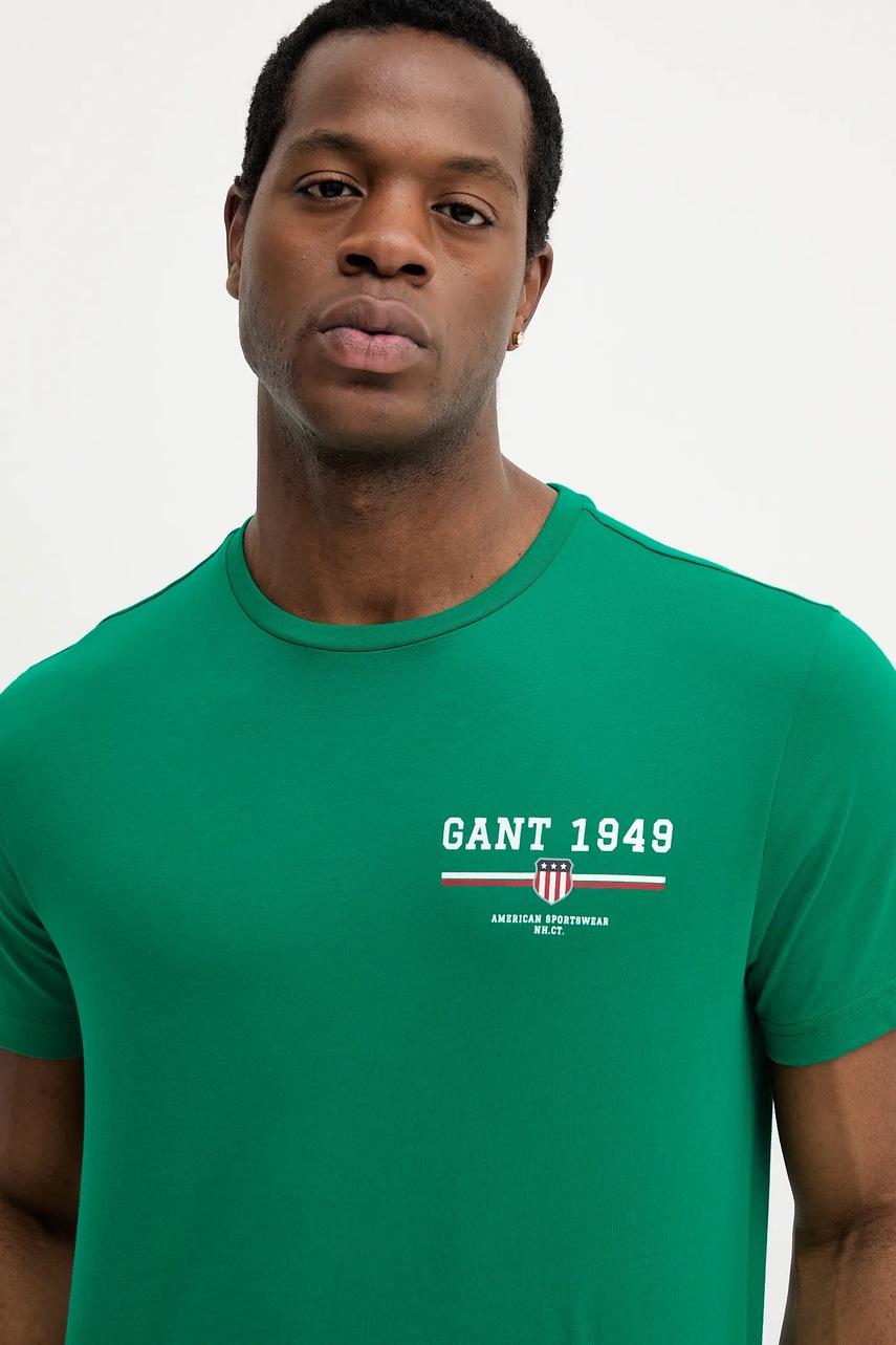 Gant t-shirt bawełniany męski kolor zielony z nadrukiem 2067044