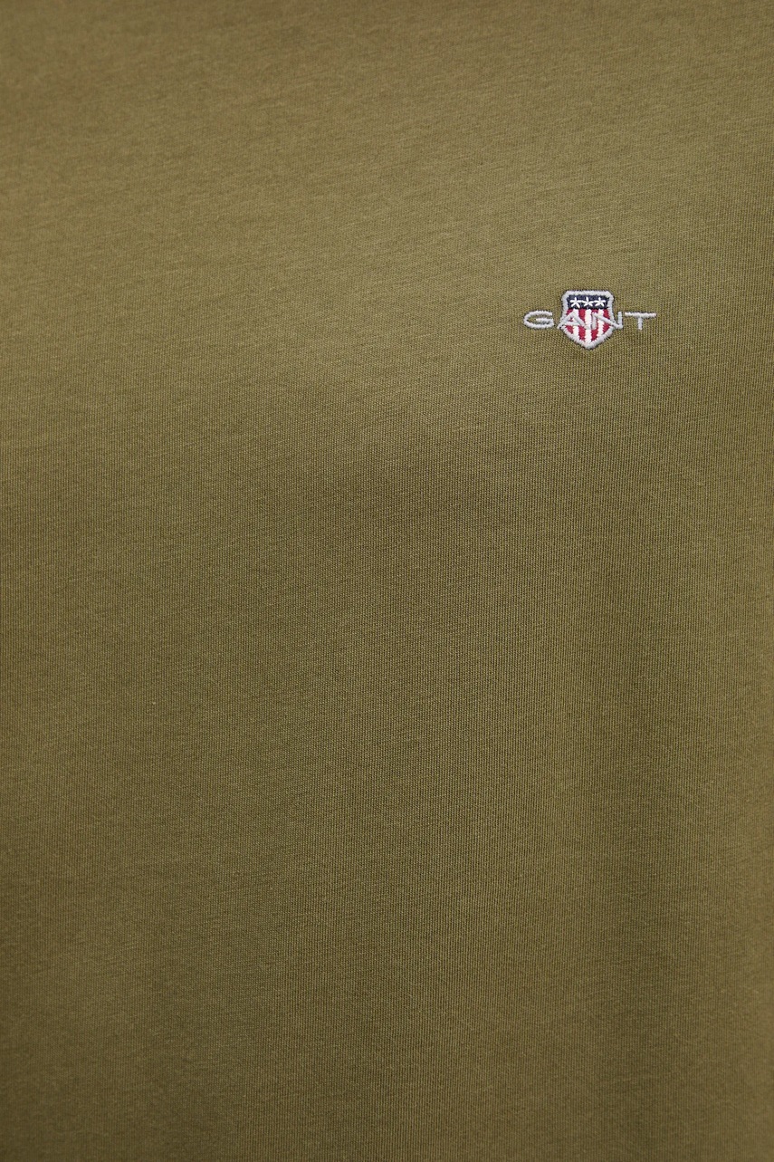 Gant t-shirt bawełniany męski kolor zielony gładki