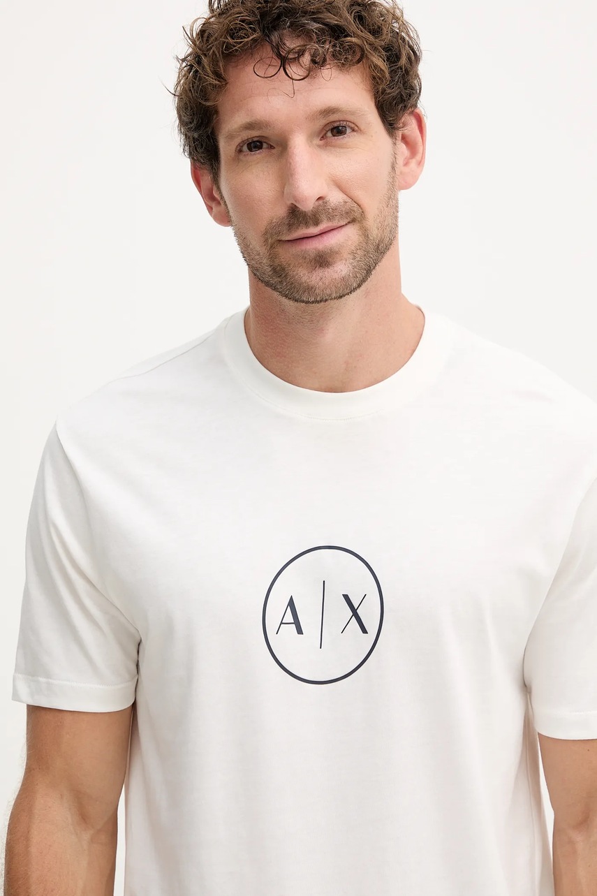 Armani Exchange t-shirt bawełniany męski kolor beżowy z nadrukiem XM001853 AF10356