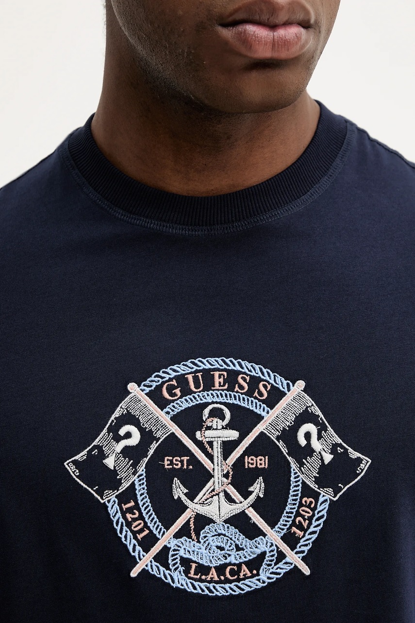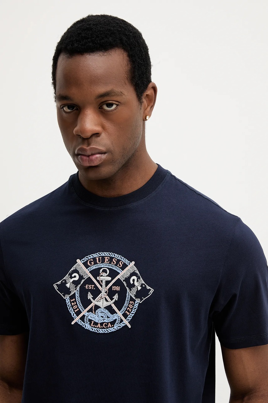 Guess t-shirt bawełniany MARINA męski kolor granatowy z aplikacją M5YI62 K8FQ4