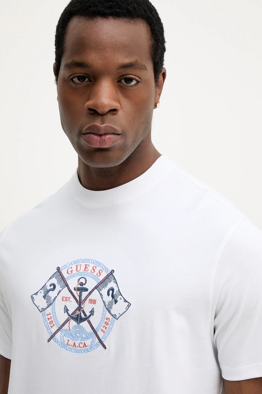 Guess t-shirt bawełniany MARINA męski kolor biały z aplikacją M5YI62 K8FQ4