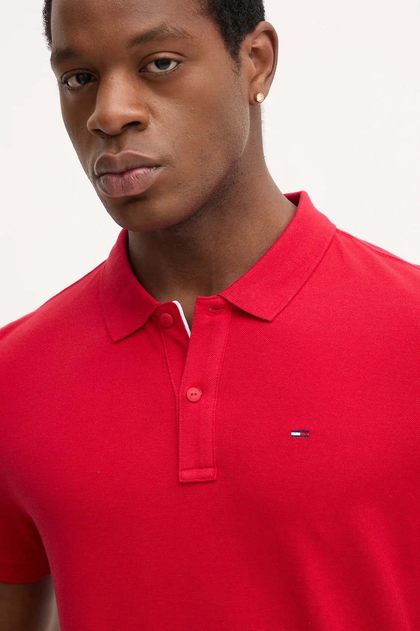 Tommy Jeans polo bawełniane kolor czerwony gładki DM0DM20676