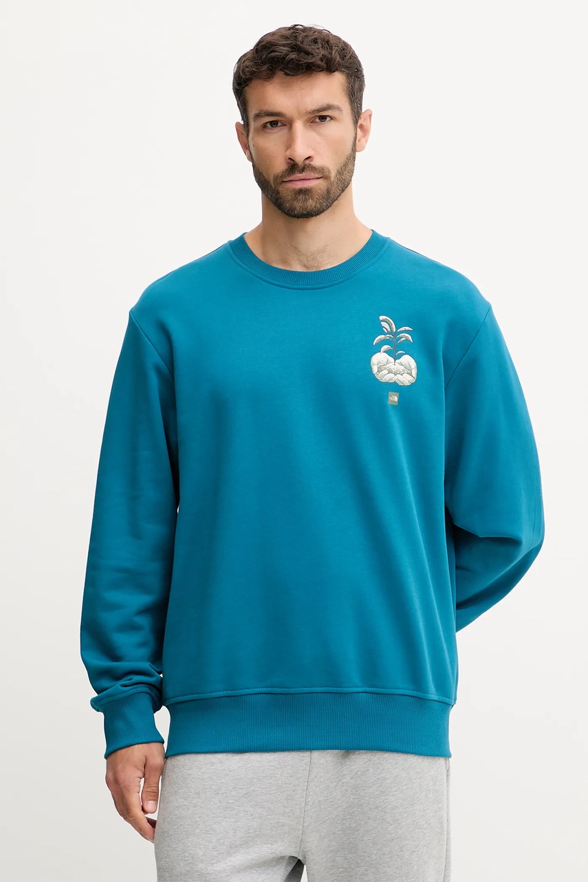 The North Face bluza bawełniana Connect Relaxed męska kolor turkusowy z nadrukiem NF0A8E3ZBSI1