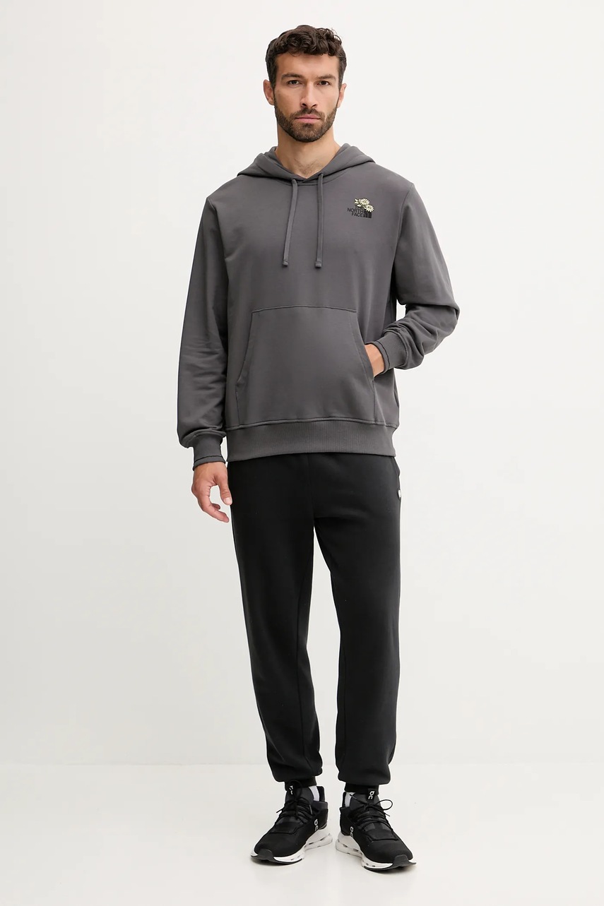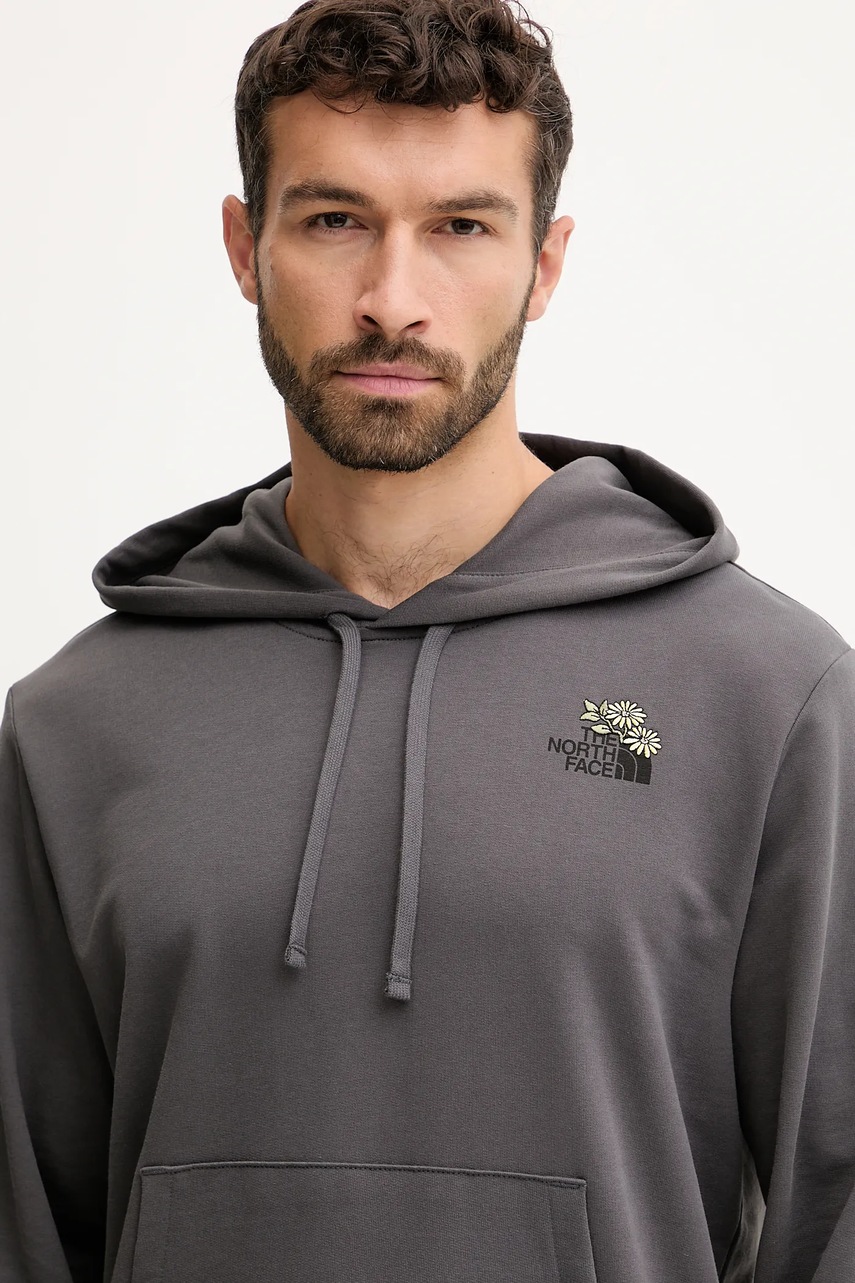 The North Face bluza bawełniana Flowe Dome męska kolor szary z kapturem z nadrukiem NF0A8EGZRHI1