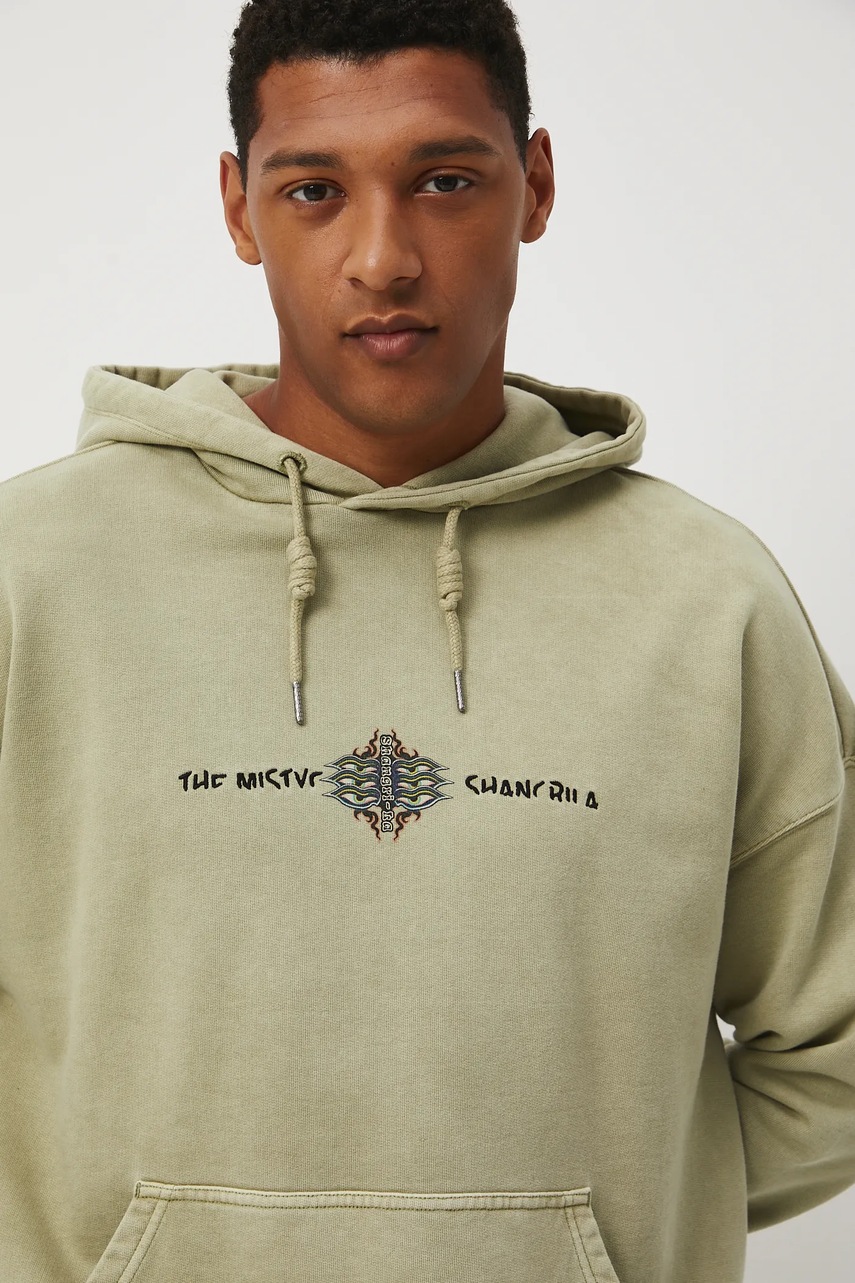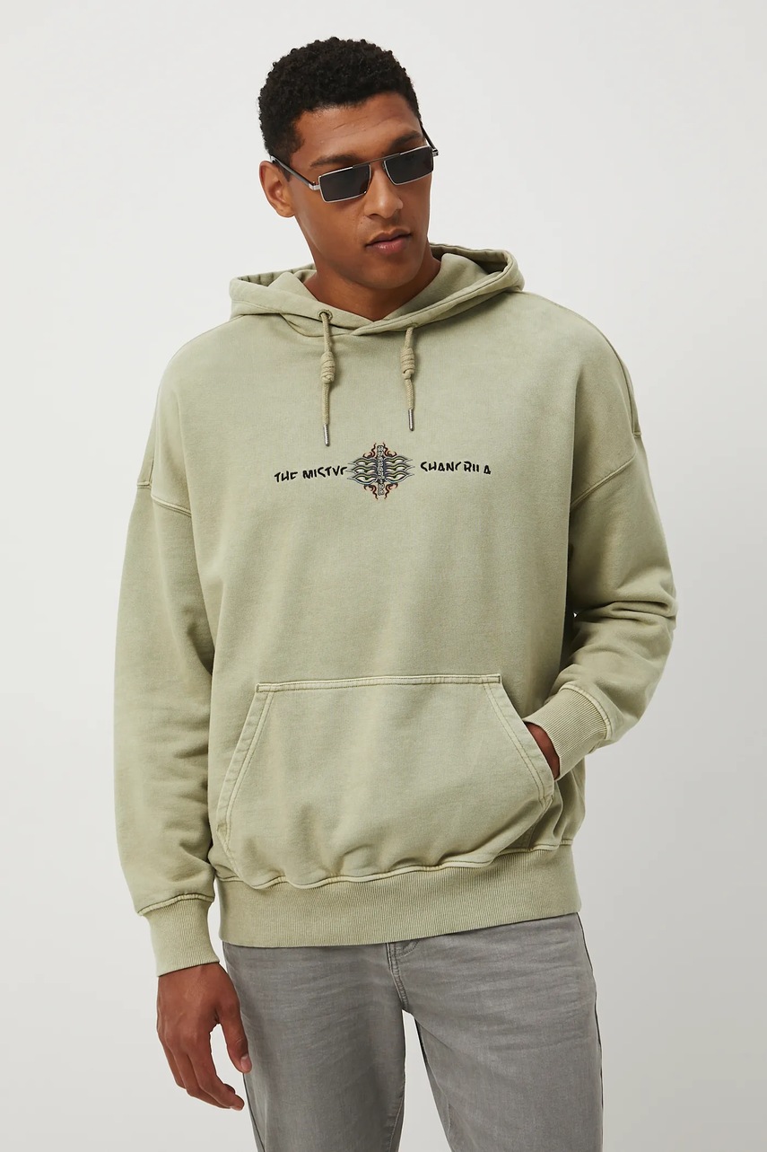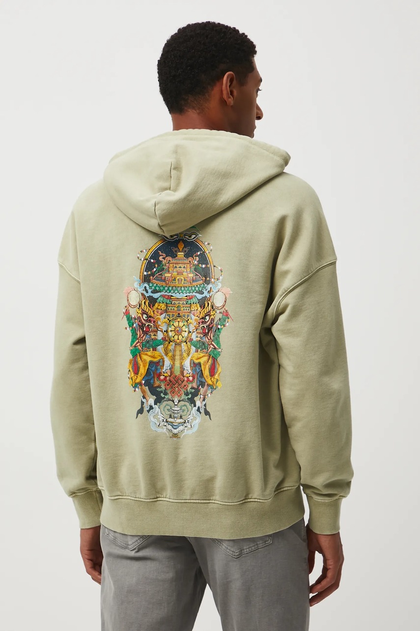 Kolekcja Lands of Legends, inspirowana najbardziej fascynującymi mitycznymi krainami, to niezwykła podróż w czasie i przestrzeni. Avalon, El Dorado, Olimp, Arkadia, Shangri-La, Asgard i Atlantyda zyskują nowe życie we współczesnym designie. Opowieści zaklęte w grafikach i wzorach redefiniują znaczenie ubioru - wykraczają poza codzienną rutynę, niosąc głębszy przekaz. Lands of Legends to odpowiedź na rosnącą potrzebę trendów z przesłaniem; świadomych, bardziej elitarnych, pełnych znaczeń. T-shirty, sukienki, bluzy oraz koszule z kolekcji mają głos, inspirują i pozwalają utożsamiać się z przedstawionymi historiami. To coś więcej niż modowy wybór - detale, faktury i kolory tej kolekcji pozwolą Ci odkrywać nieznane dotąd oblicza stylu.Oryginalnym dodatkiem do produktów z kolekcji są dedykowane metki skrywające krótkie ciekawostki o legendach - bo moda to nie tylko stylizacja, ale też wiedza i pasja.Nadruk inspirowany mityczną krainą Shangri-La - utopijnym miejscem ukrytym w Himalajach, gdzie panuje wieczny pokój, harmonia i długowieczność.