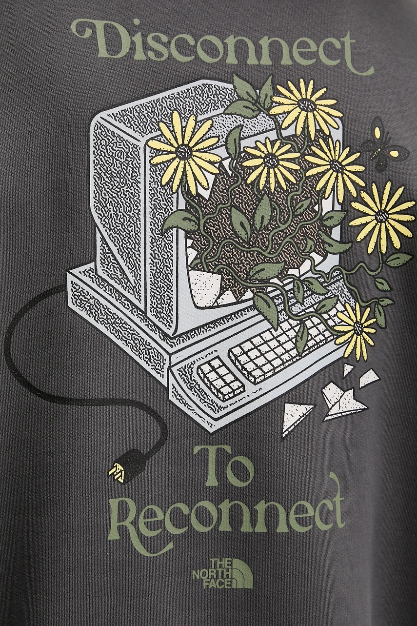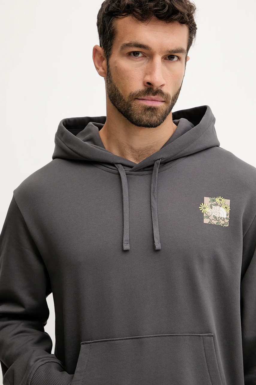 The North Face bluza bawełniana Connect Relaxed męska kolor szary z kapturem z nadrukiem NF0A8E40RHI1
