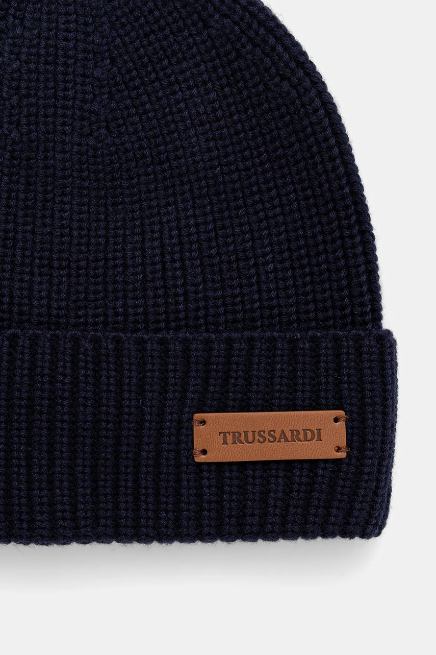 Trussardi czapka z domieszką wełny kolor granatowy E603C000002N