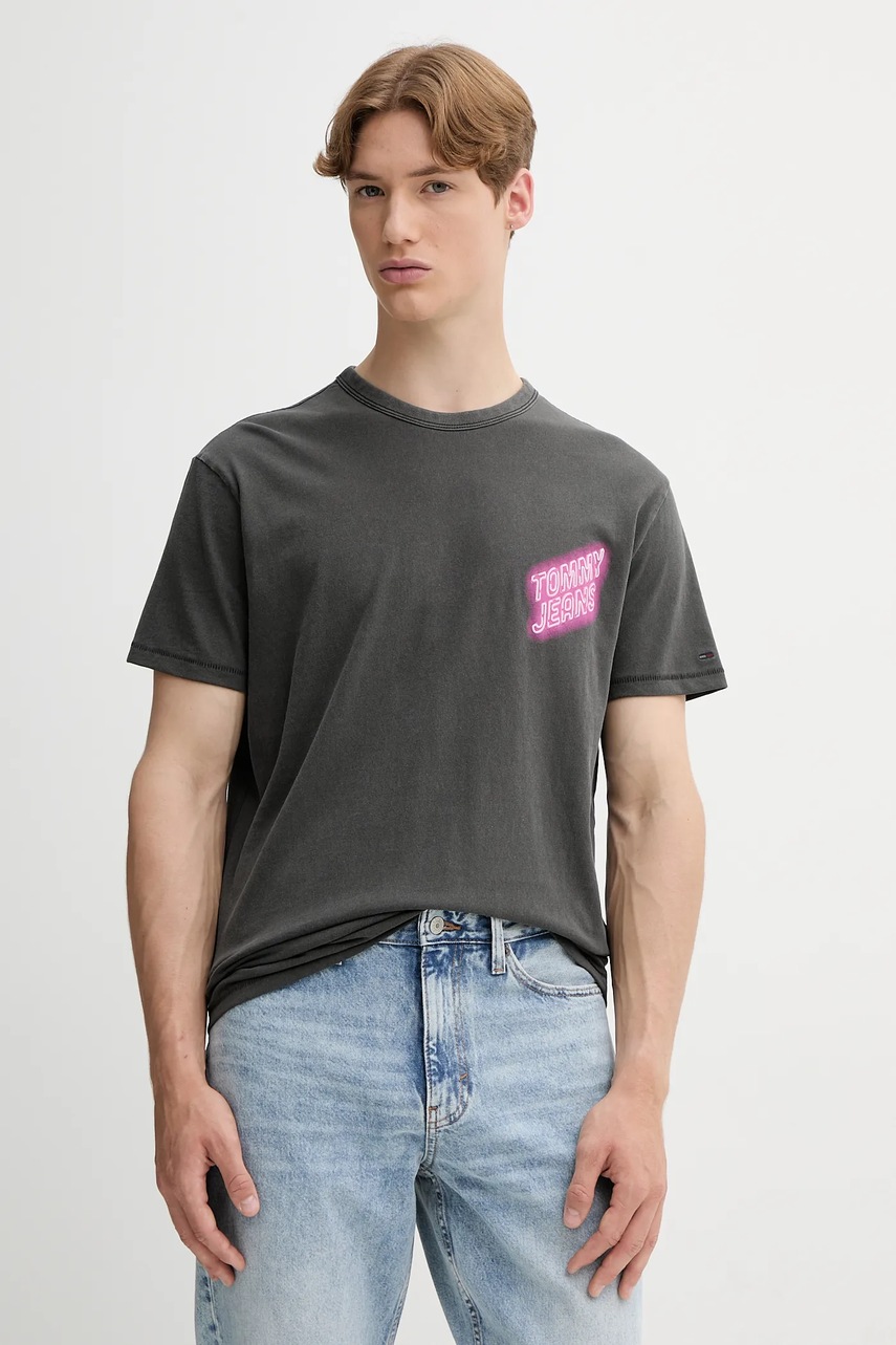 Tommy Jeans t-shirt bawełniany męski kolor szary z nadrukiem DM0DM21829
