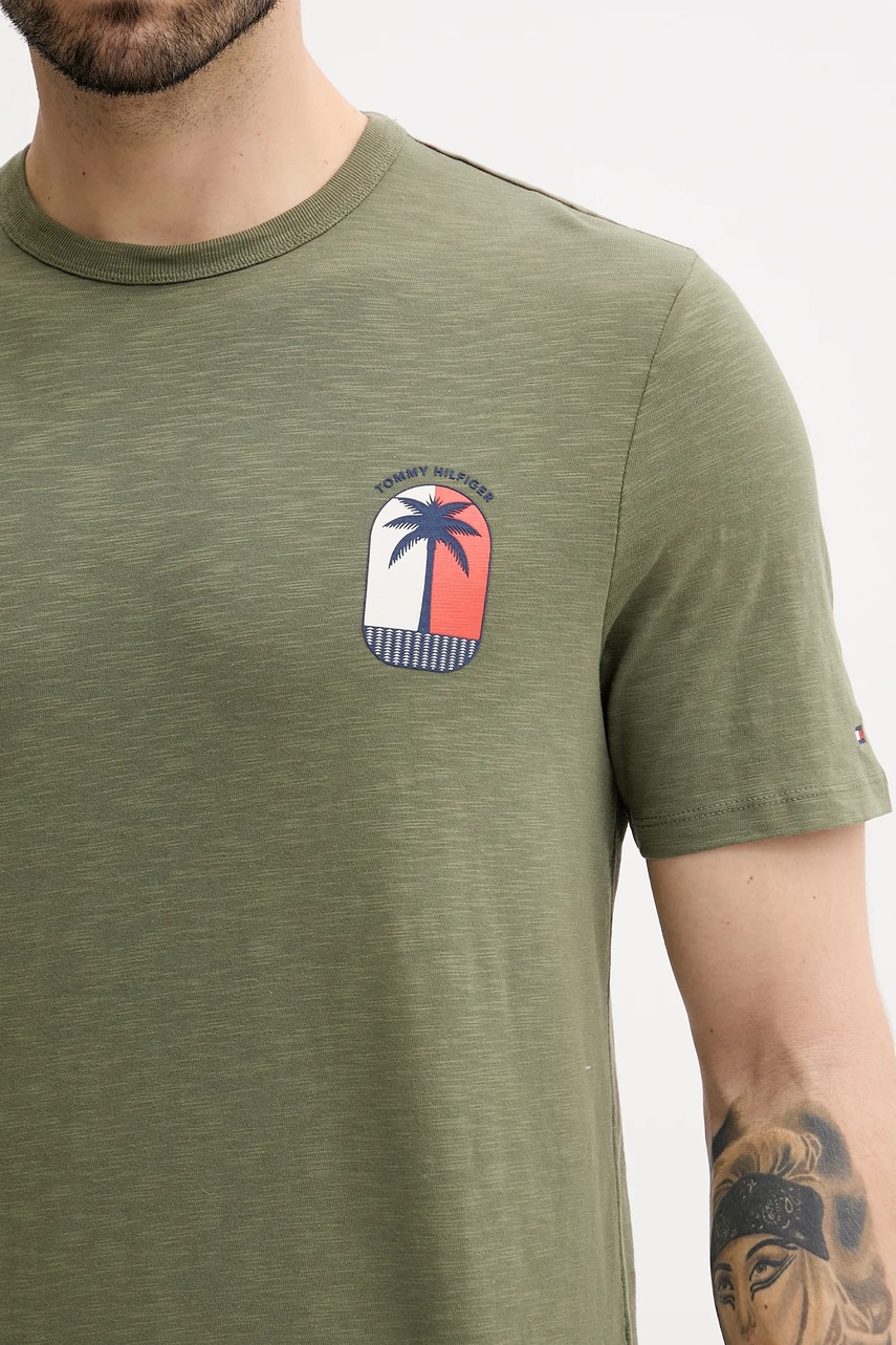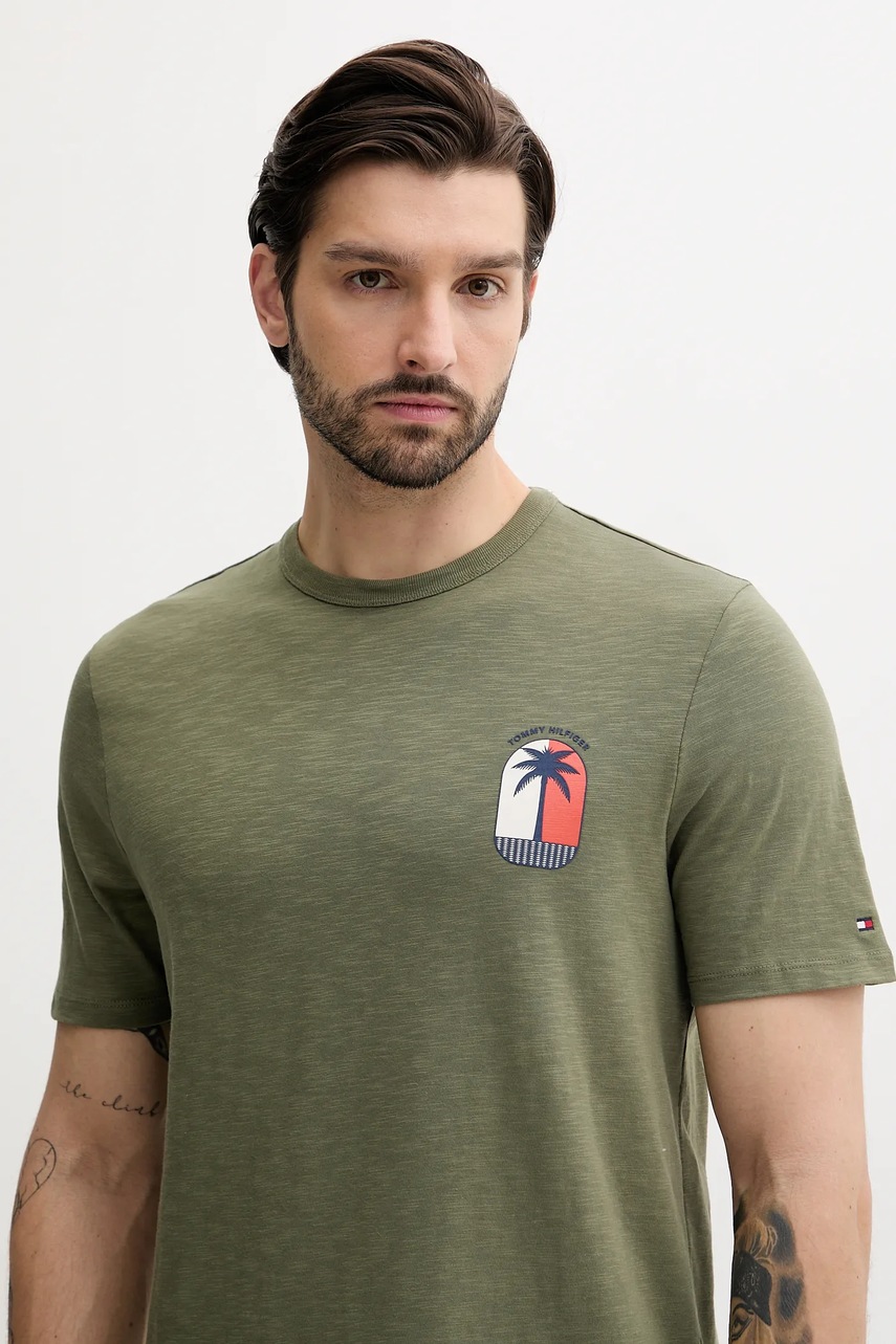 Tommy Hilfiger t-shirt bawełniany męski kolor zielony z nadrukiem MW0MW39354