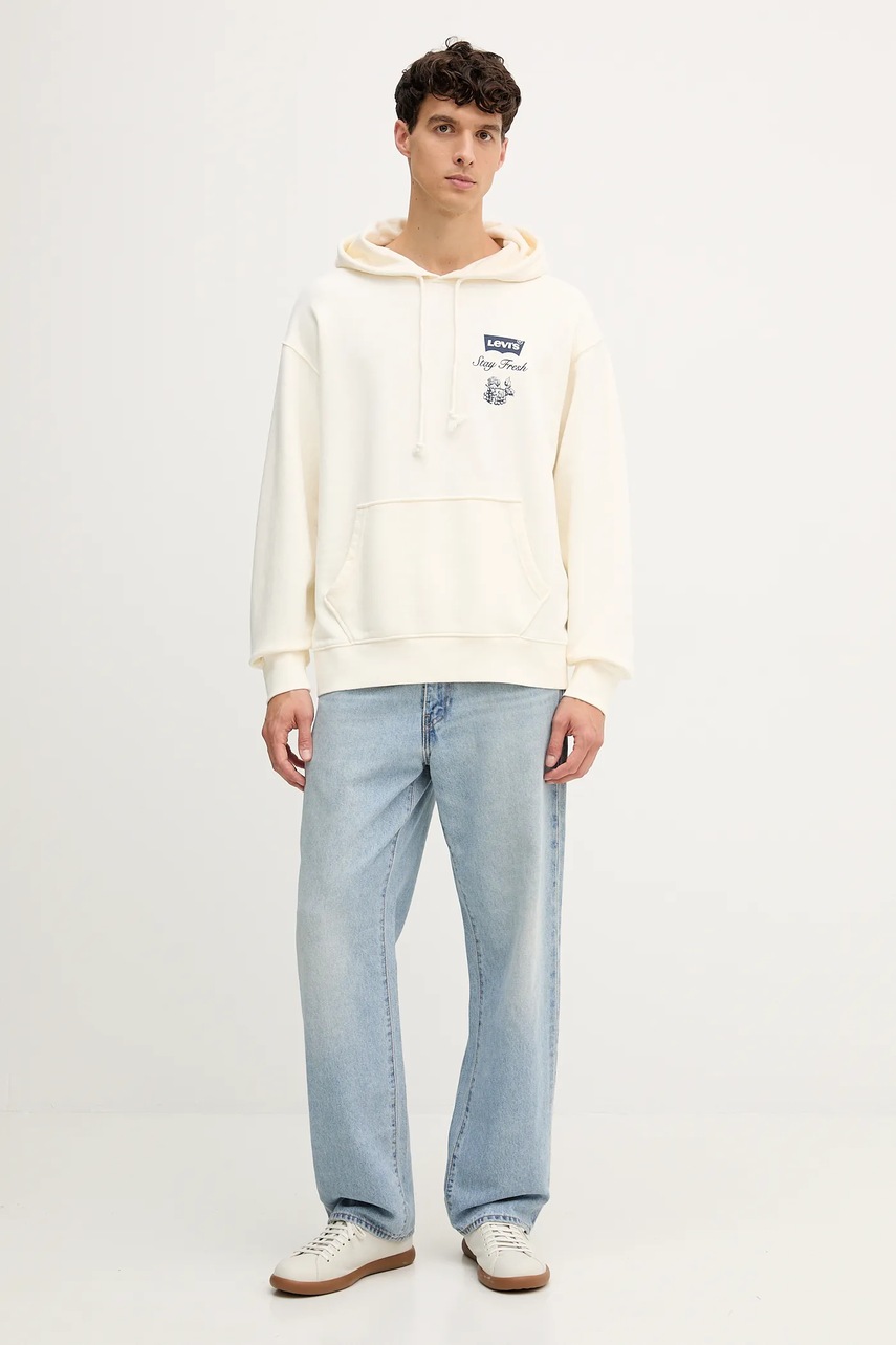 Levi's bluza bawełniana męska kolor beżowy z kapturem z nadrukiem A2639