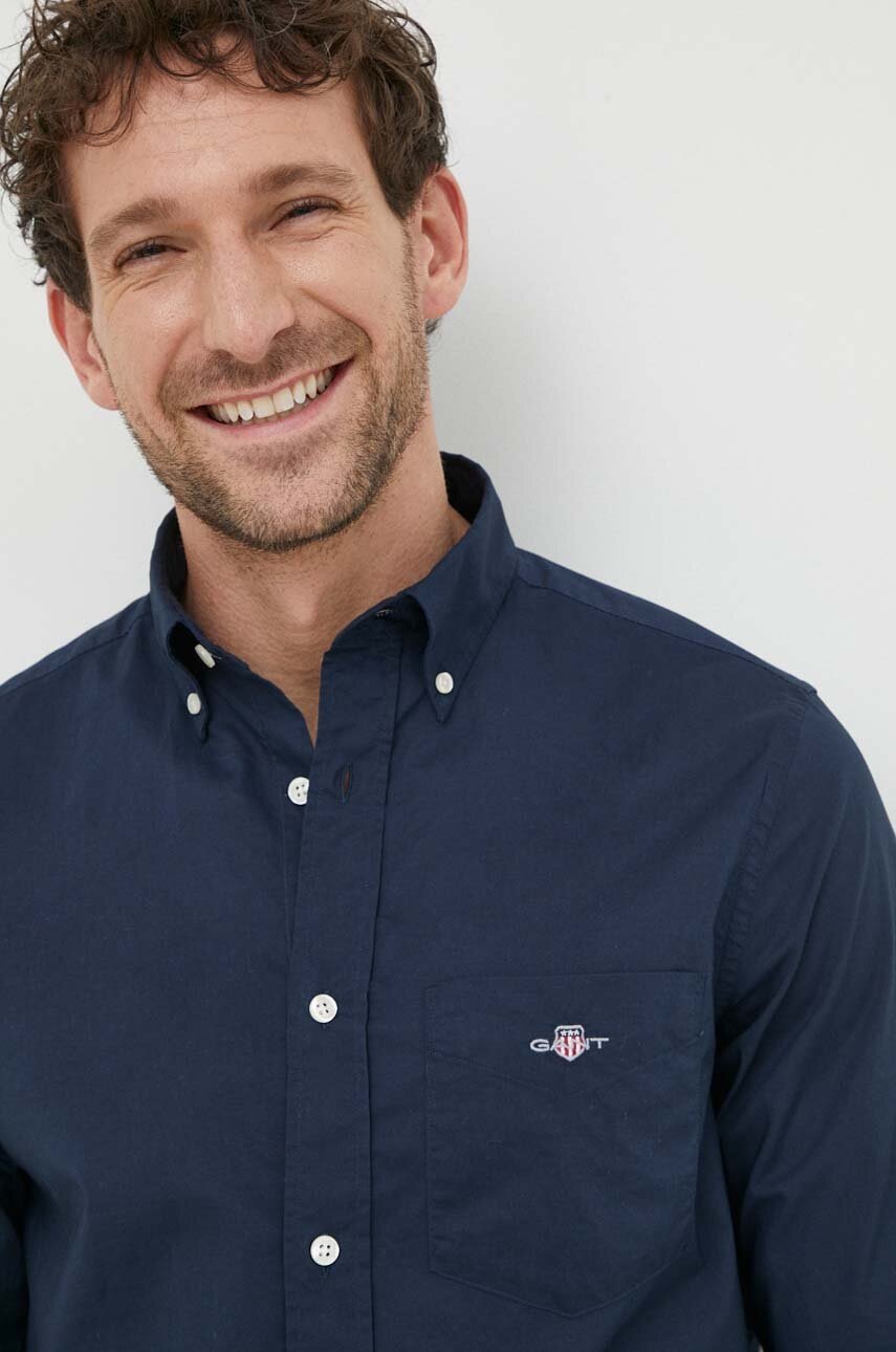 Gant koszula bawełniana męska kolor granatowy regular z kołnierzykiem button-down