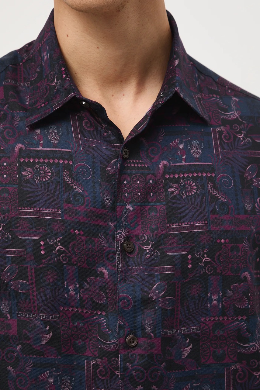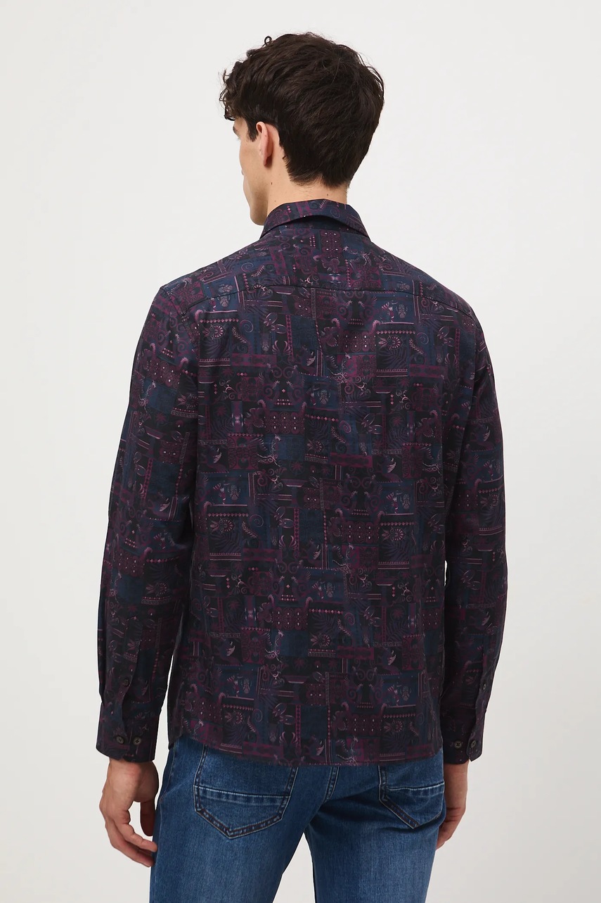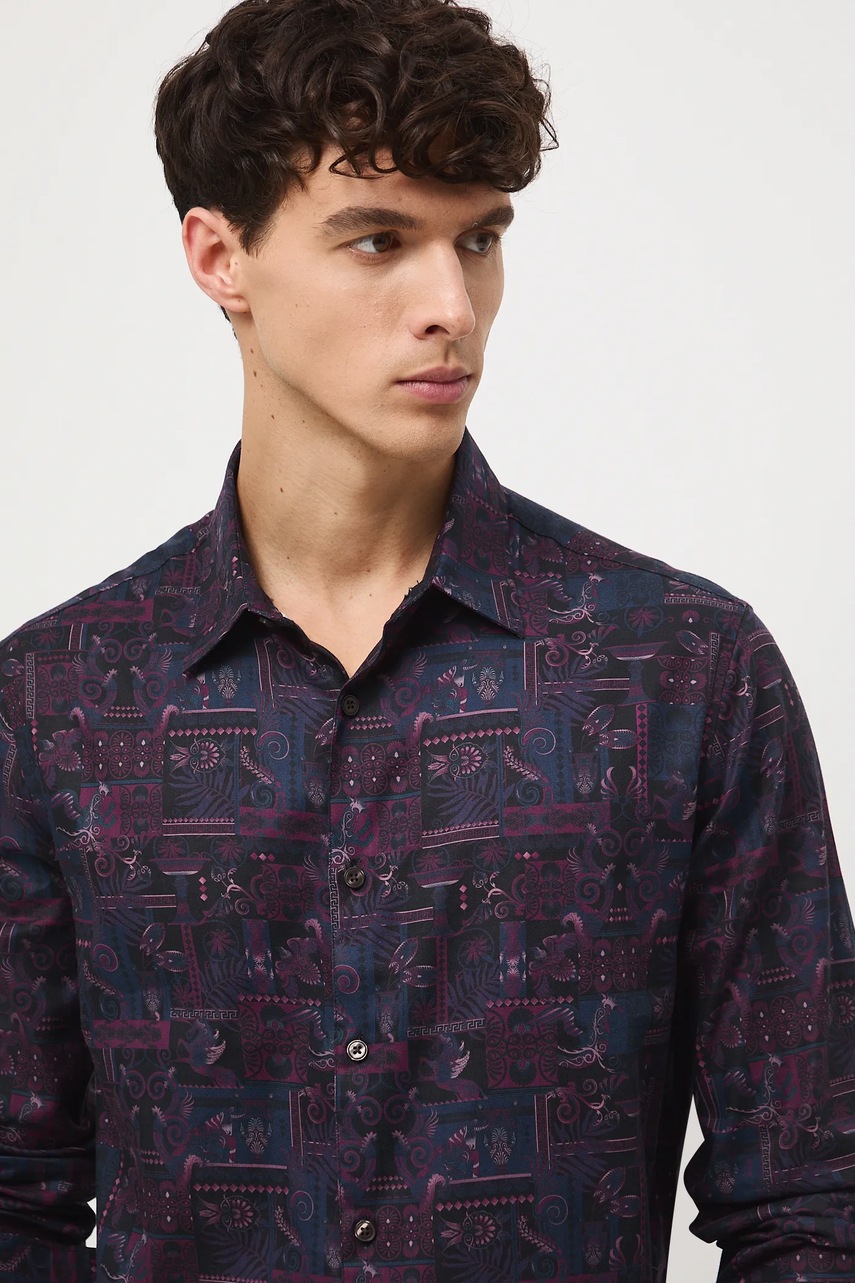 - Koszula w fasonie regular delikatnie dopasowuje się do sylwetki, ale nie podkreśla jej nadmiernie, zapewniając swobodę ruchów.