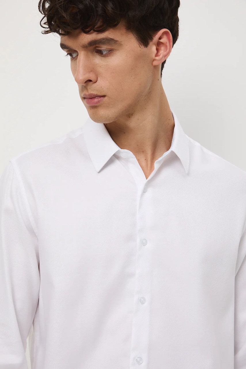 Medicine koszula bawełniana męska kolor biały regular z kołnierzykiem włoskim