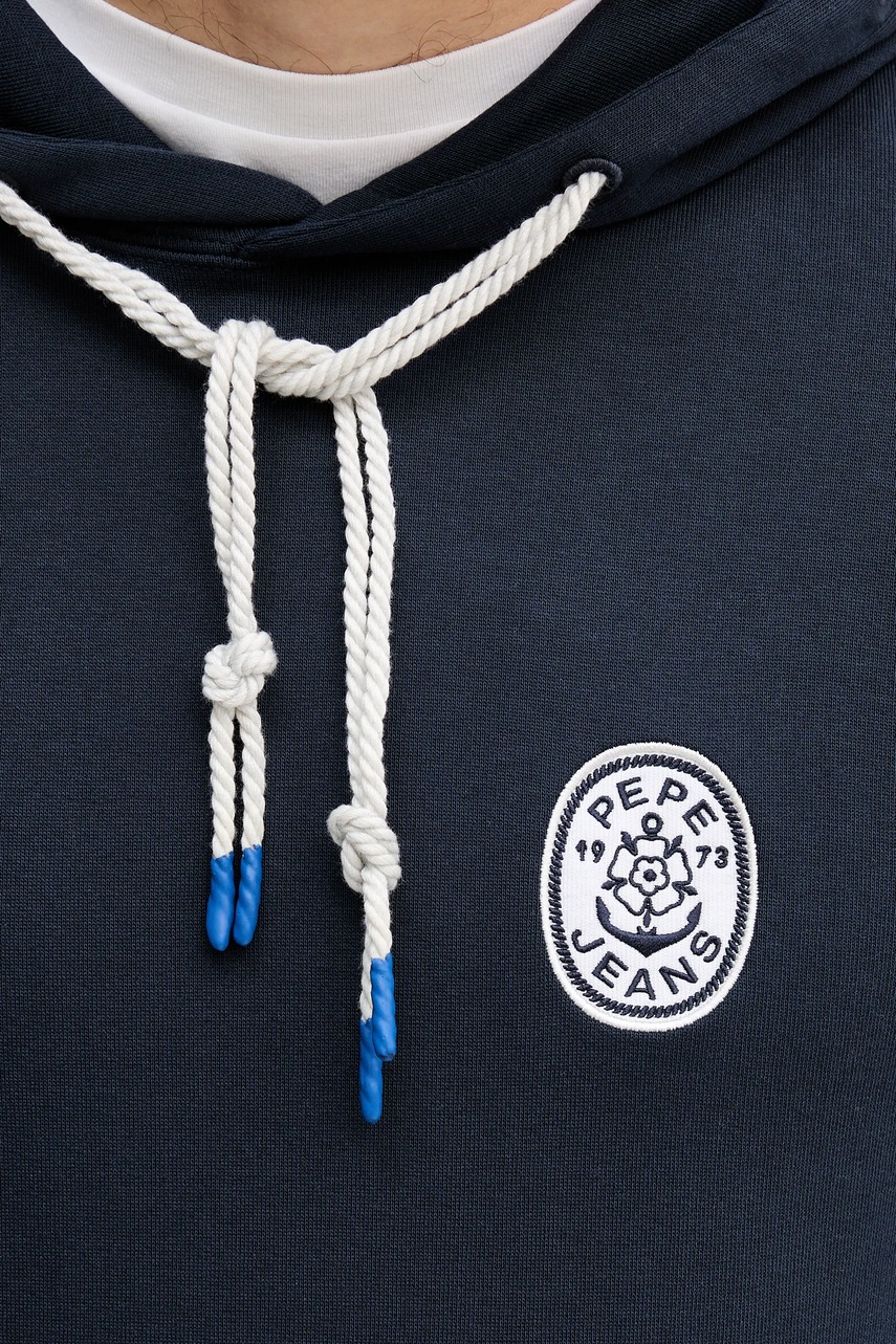 Pepe Jeans bluza bawełniana męska kolor granatowy z kapturem z aplikacją PM5800042