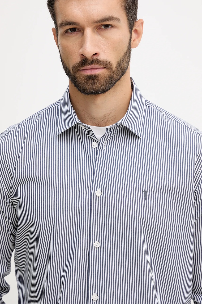Trussardi koszula bawełniana męska kolor granatowy relaxed z kołnierzykiem klasycznym 5007N000009N