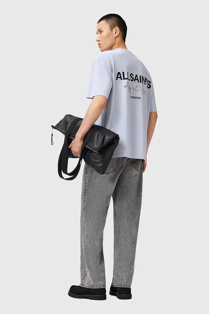 AllSaints t-shirt bawełniany AMORE męski kolor niebieski z nadrukiem M010PC