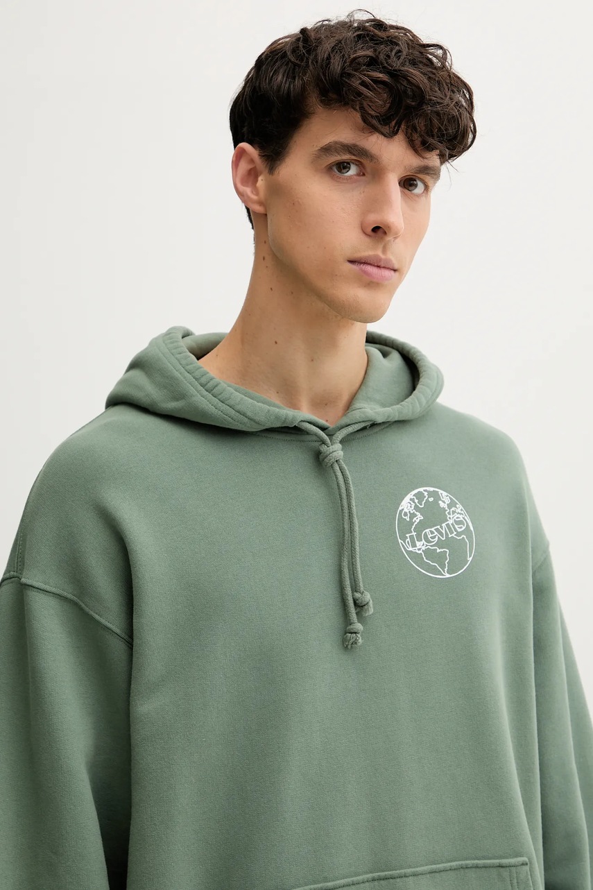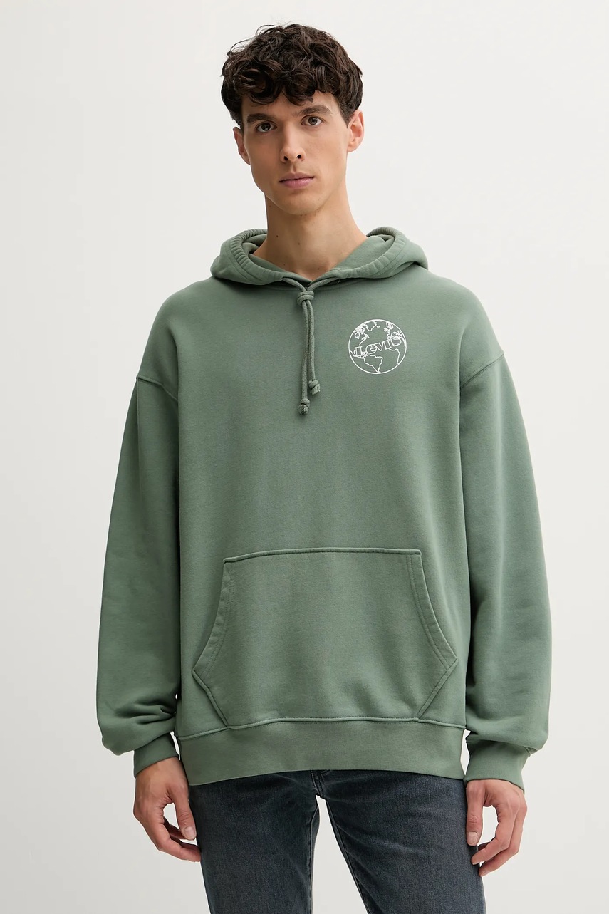 Levi's bluza bawełniana męska kolor zielony z kapturem z nadrukiem A2639
