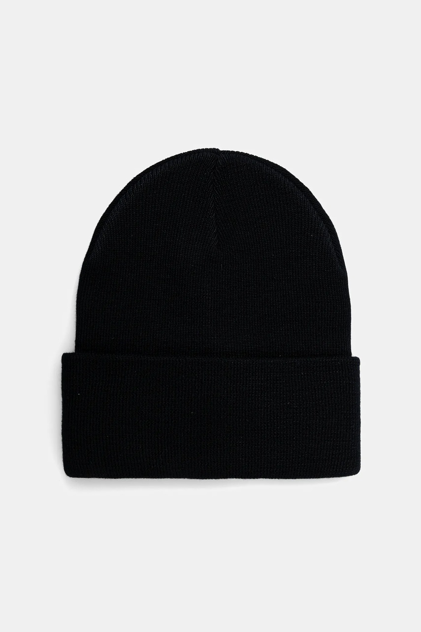 HUGO czapka wełniana kolor czarny z cienkiej dzianiny wełniana