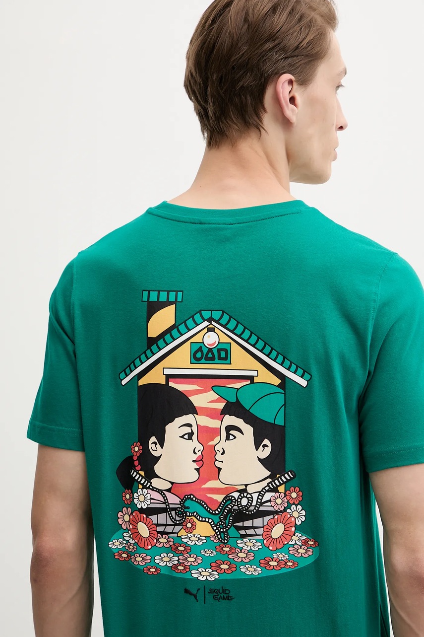 Puma t-shirt bawełniany PUMA x SQUID GAME męski kolor zielony z nadrukiem 630706