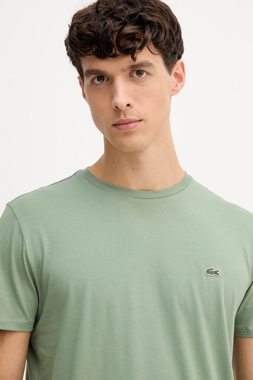 Lacoste t-shirt bawełniany męski kolor zielony gładki TH6709