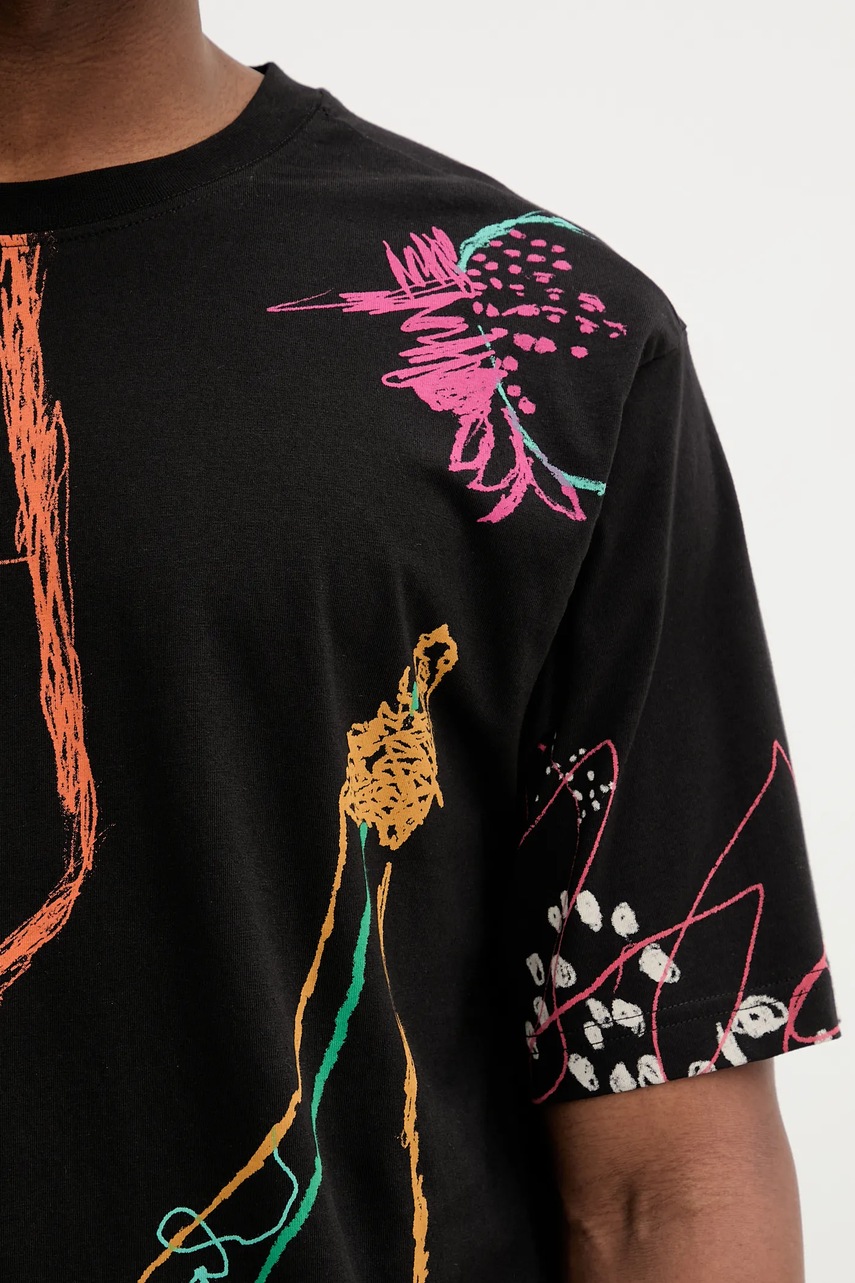 Desigual t-shirt bawełniany MATARO męski kolor czarny wzorzysty 25WMTK12