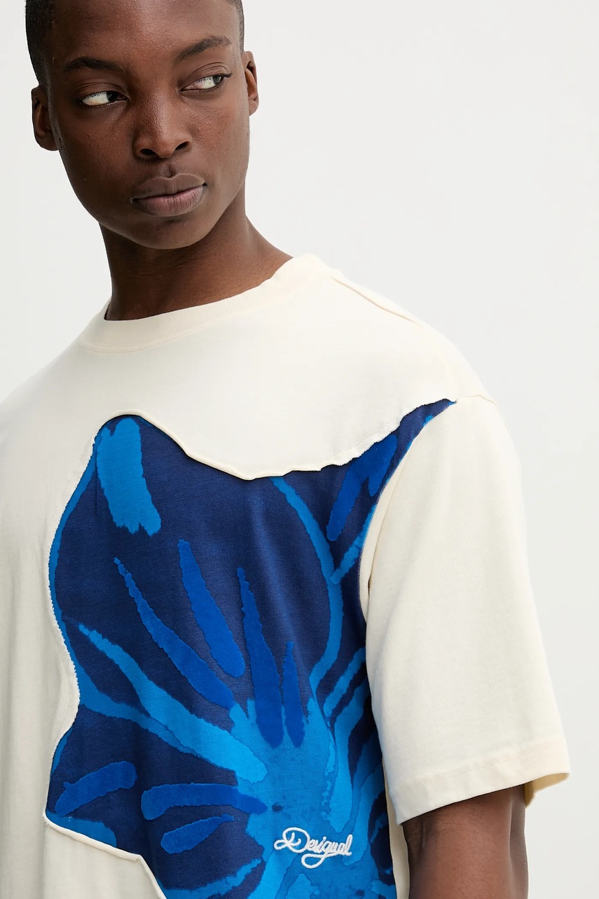 Desigual t-shirt bawełniany PANCHO męski kolor beżowy wzorzysty 25WMTK01