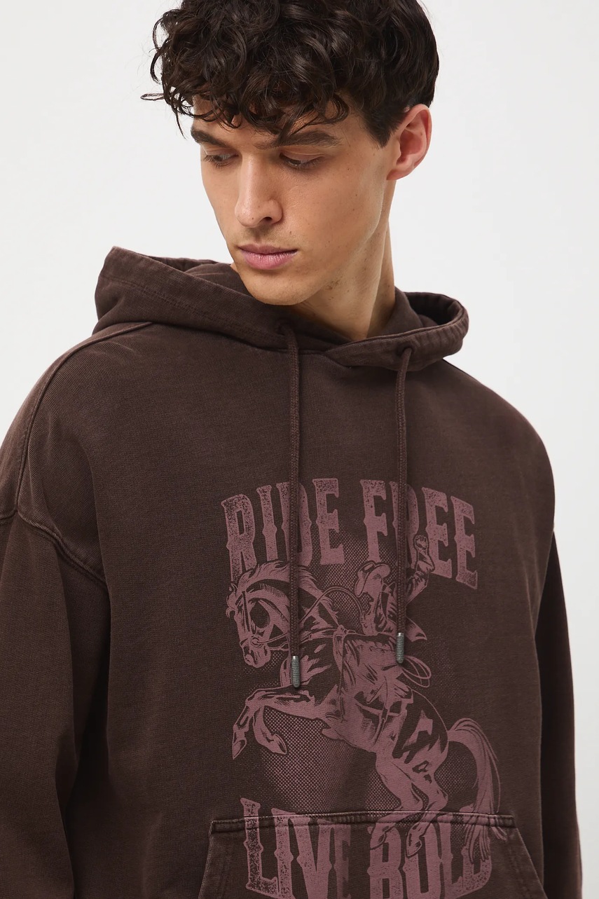Medicine bluza bawełniana męska kolor brązowy z kapturem z nadrukiem