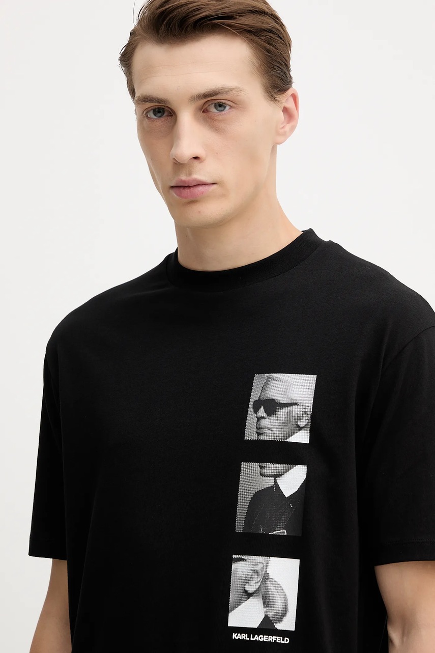 Karl Lagerfeld t-shirt bawełniany męski kolor czarny z nadrukiem 554225.755139