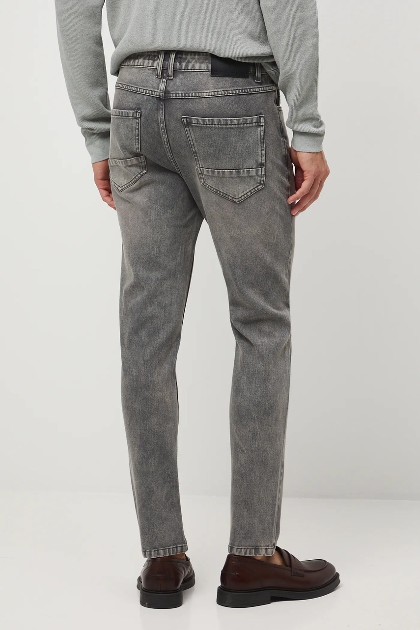 - Fason slim - jeansy o dopasowanym kroju z wąską nogawką, zarówno w okolicach ud, jak i kostki. Podkreślają naturalną linię sylwetki, lecz jej nie opinają - są komfortowe w codziennym użytkowaniu.