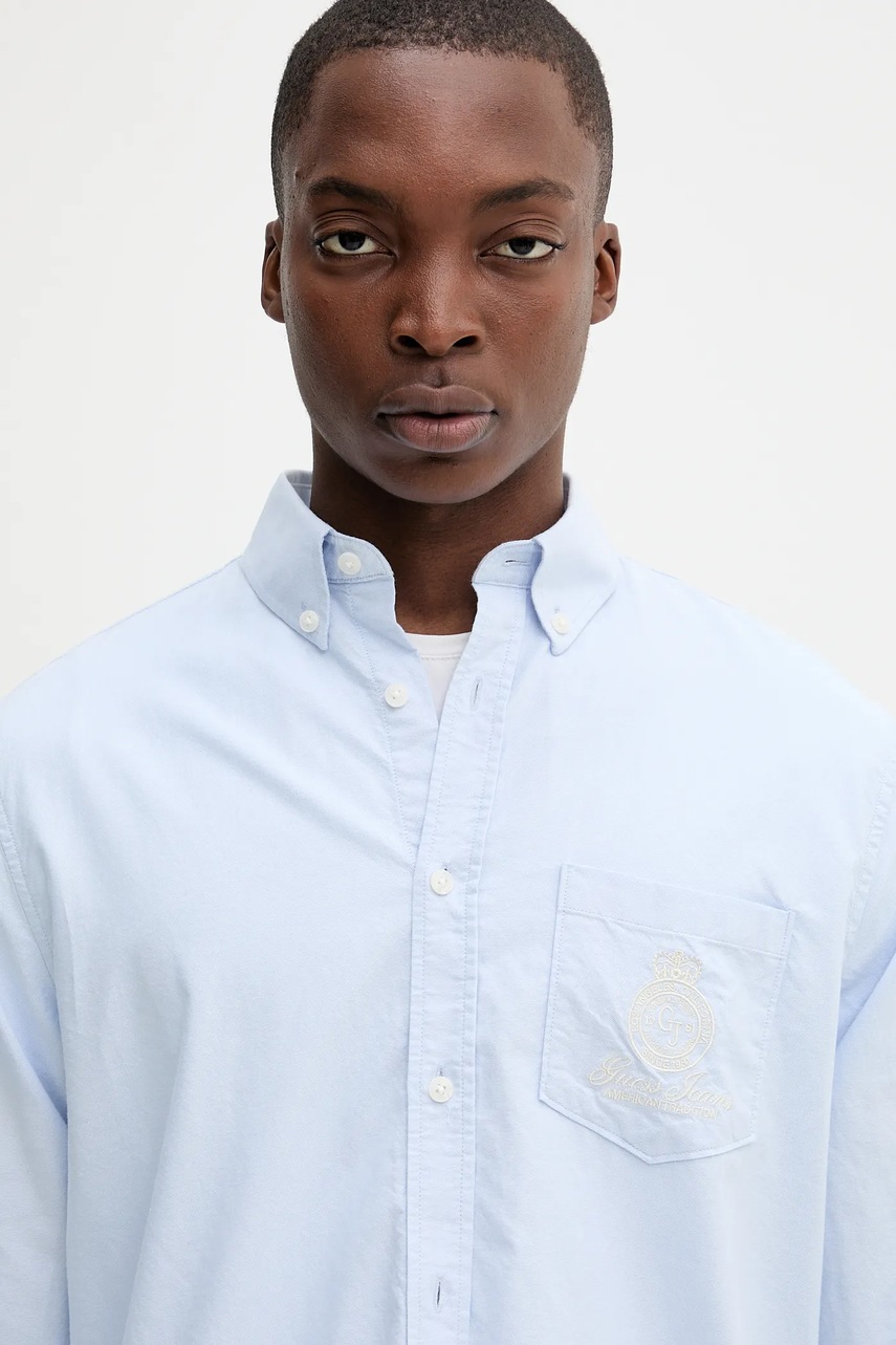 Guess Jeans koszula bawełniana męska kolor niebieski regular z kołnierzykiem button-down M5YH64 WHFK1