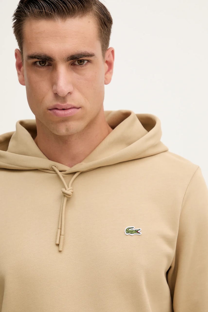 Lacoste bluza bawełniana męska kolor beżowy z kapturem gładka SH9839