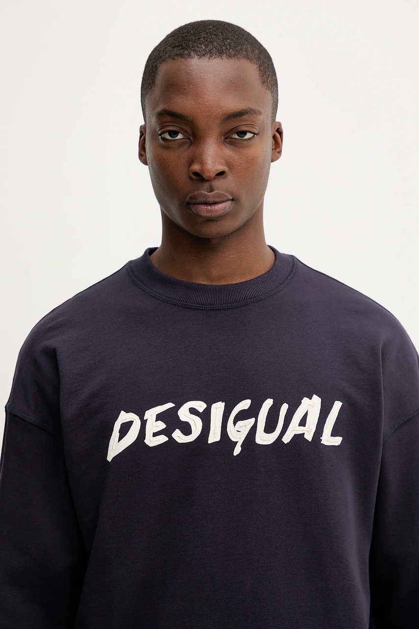 Desigual bluza bawełniana PHIL męska kolor granatowy z nadrukiem 25WMSK05