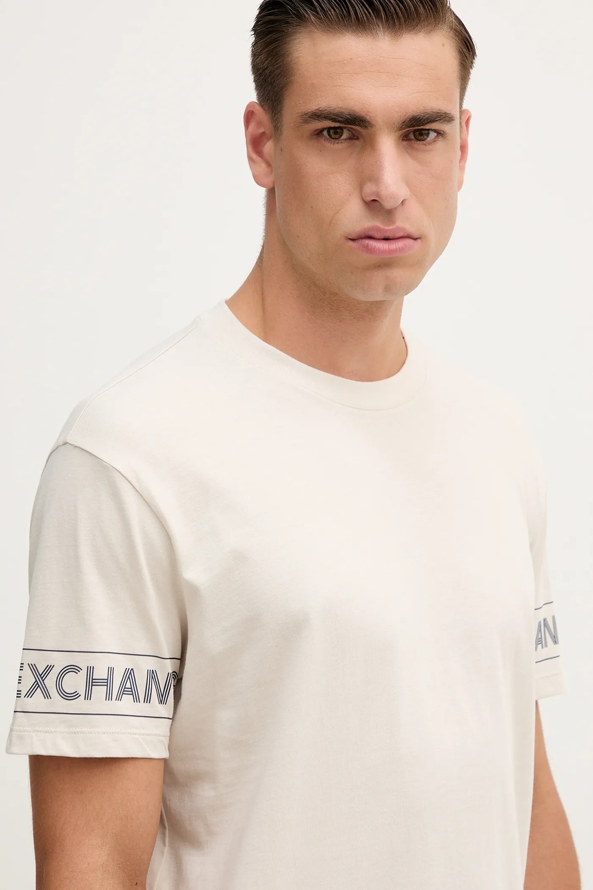 Armani Exchange t-shirt bawełniany męski kolor beżowy z nadrukiem XM001437 AF10356