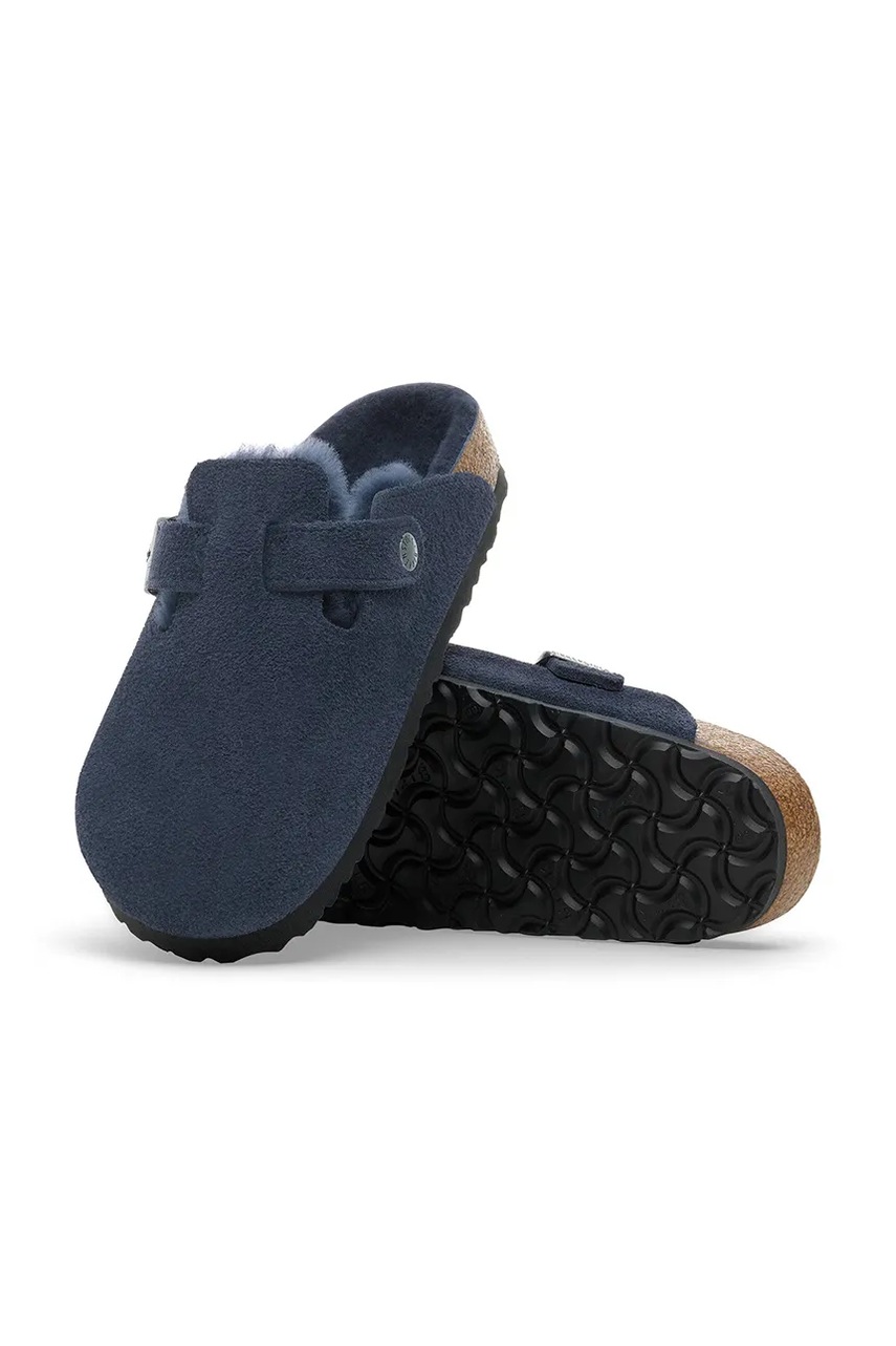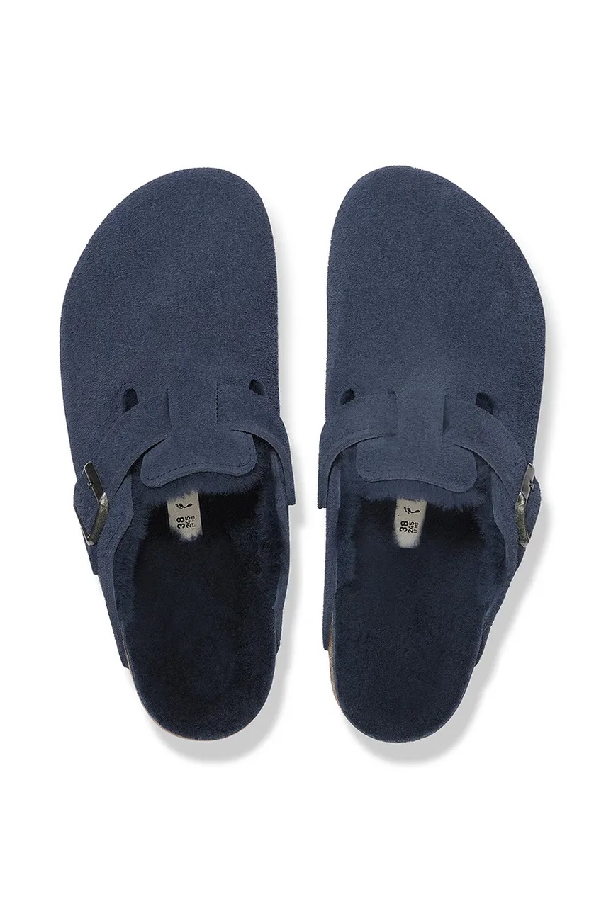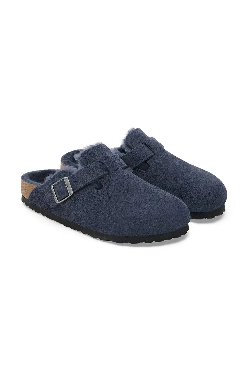 Birkenstock klapki zamszowe Boston Shearling męskie kolor granatowy 1030657