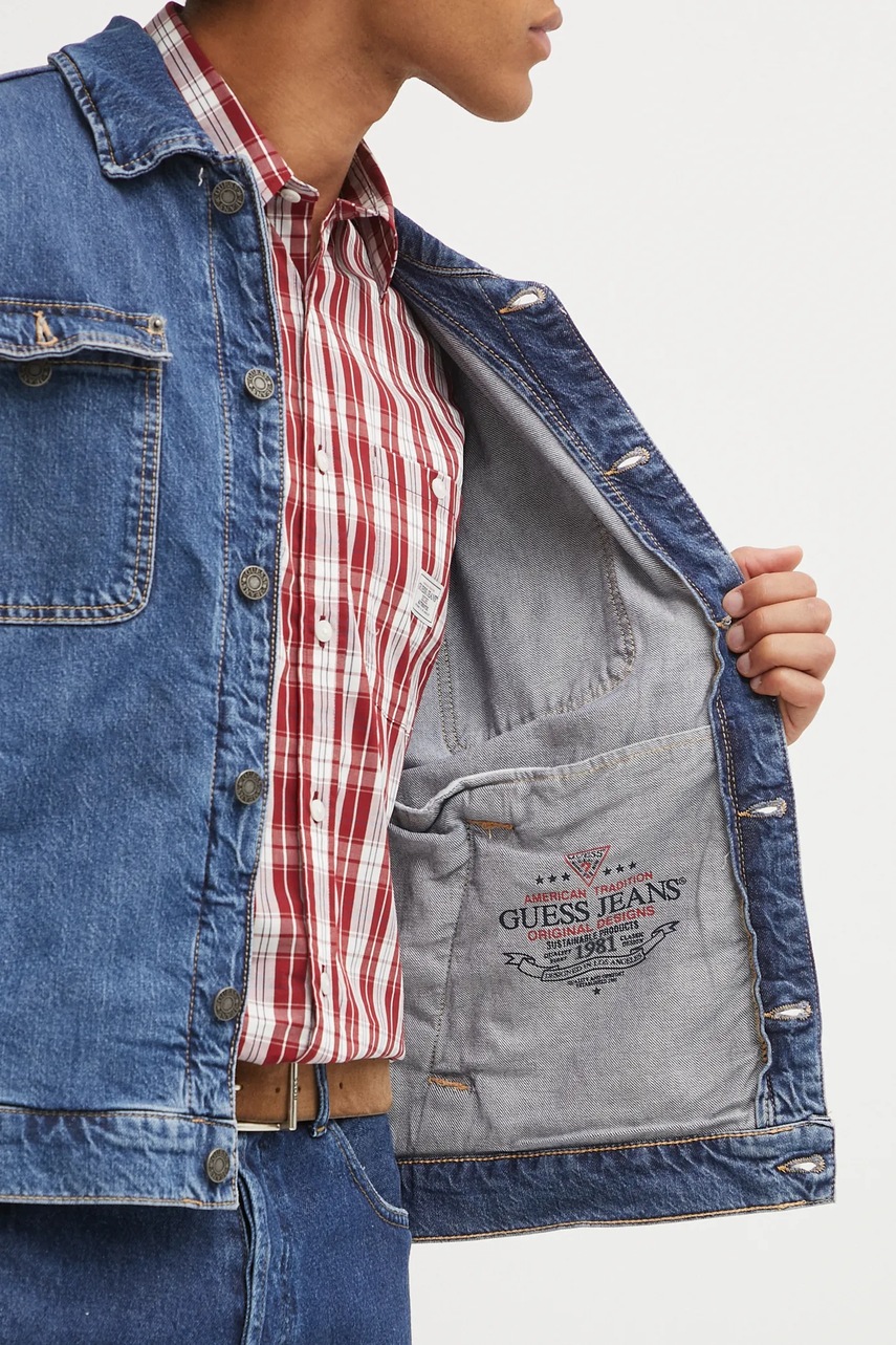 Guess Jeans kurtka jeansowa kolor niebieski przejściowa M5YN50 D5M54