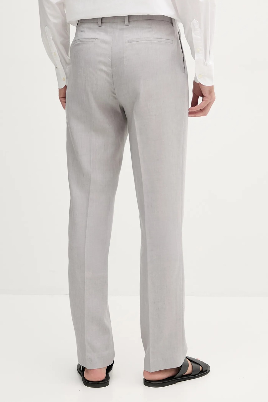 Calvin Klein spodnie lniane męskie kolor szary dopasowane LV04LB448G