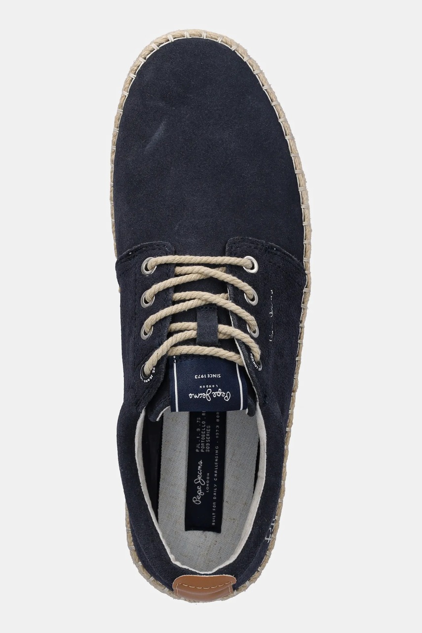 Co wyróżnia zamszowe espadryle Pepe Jeans?Cholewka z naturalnej skóry zamszowej oraz licowej gwarantuje trwałość, przyjemne dopasowanie do stopy i subtelnie elegancki wygląd nawet po wielu sezonach użytkowaniaGumowa podeszwa zewnętrzna zapewnia elastyczność, doskonałą przyczepność oraz bezpieczeństwo na różnych nawierzchniach podczas codziennych aktywnościUniwersalny styl casual doskonale współgra zarówno z jeansami, jak i letnimi szortami czy lnianymi spodniami, sprawdzając się w codziennych stylizacjach i podczas letnich wyjazdówPłaska podeszwa bez obcasa pozwala na naturalny chód i komfort nawet przez wiele godzin noszeniaNiska wysokość cholewki do kostki podkreśla zgrabną sylwetkę stopy oraz ułatwia szybkie zakładanie i zdejmowanie butówWnętrze z miękkiego materiału tekstylnego wspiera oddychalność i odprowadzanie wilgoci, zapewniając świeżość nawet w cieplejsze dniWkładka z materiału włókienniczego dba o wygodę każdego kroku i chroni przed otarciami w trakcie codziennego użytkowaniaOkrągły, miękki nosek daje palcom więcej przestrzeni, podnosząc komfort i minimalizując uczucie ucisku przy dłuższym chodzeniuSznurówki umożliwiają indywidualne dopasowanie szerokości do stopy, gwarantując stabilność i pewność podczas użytkowaniaJednolita, gładka powierzchnia zamszu nadaje butom ponadczasowy, elegancki charakter oraz ułatwia stylizowanie na różne okazjeUsztywniony zapiętek chroni stopę i stabilizuje piętę, zwiększając trwałość całego modelu