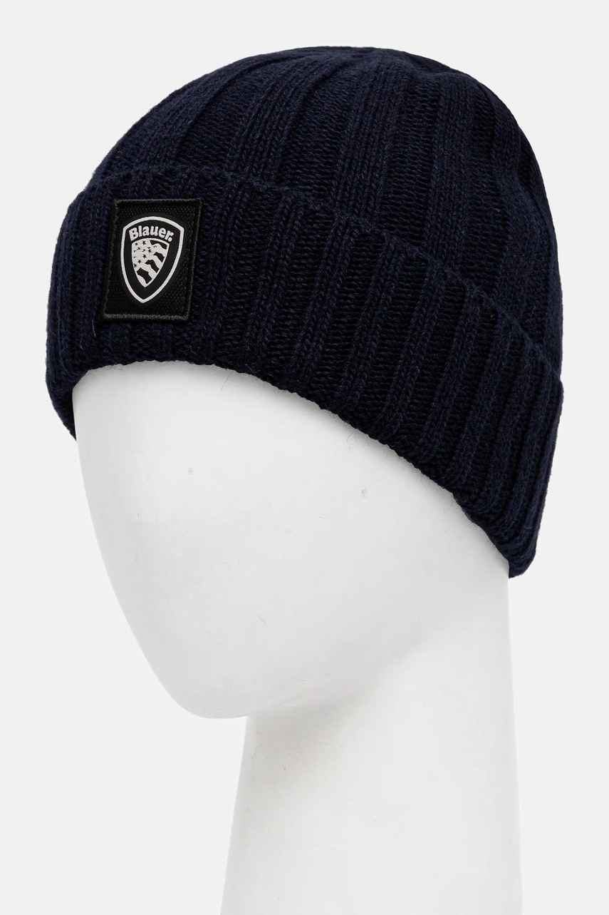 HUGO czapka wełniana kolor granatowy z cienkiej dzianiny wełniana