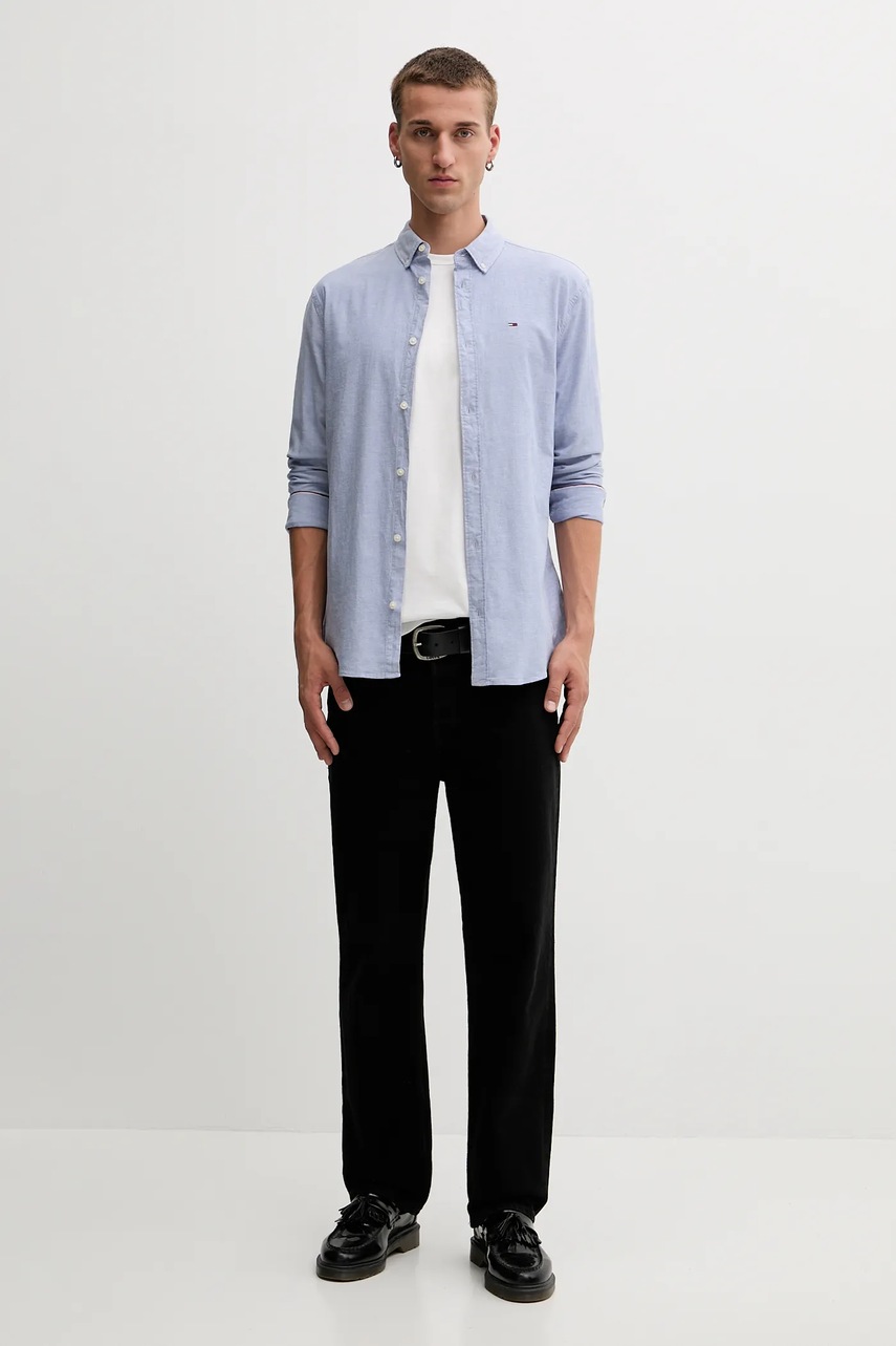 Tommy Jeans koszula męska kolor niebieski slim z kołnierzykiem button-down DM0DM09594